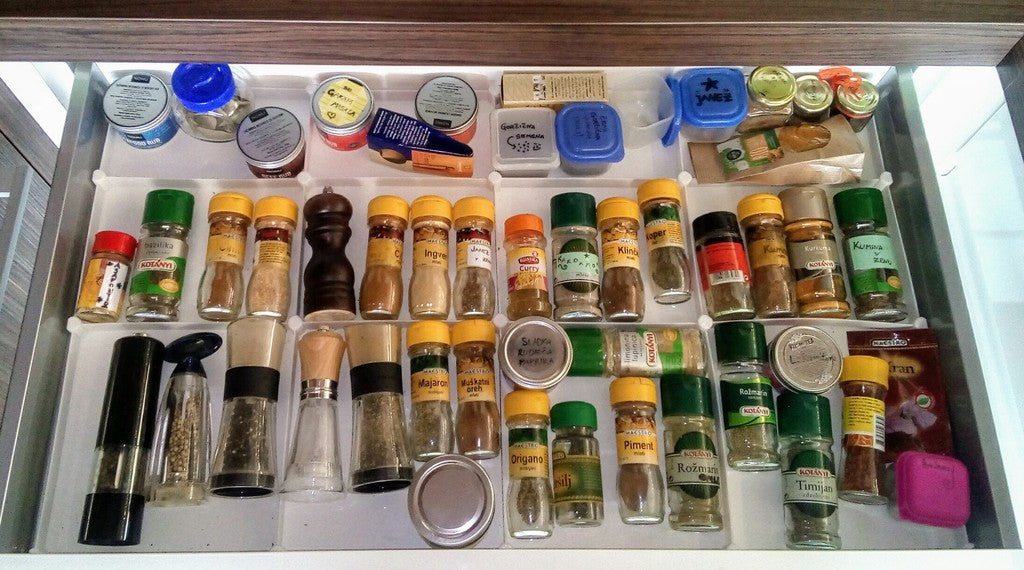 Sistema di organizzazione dei cassetti con divisori intercambiabili per i vani
