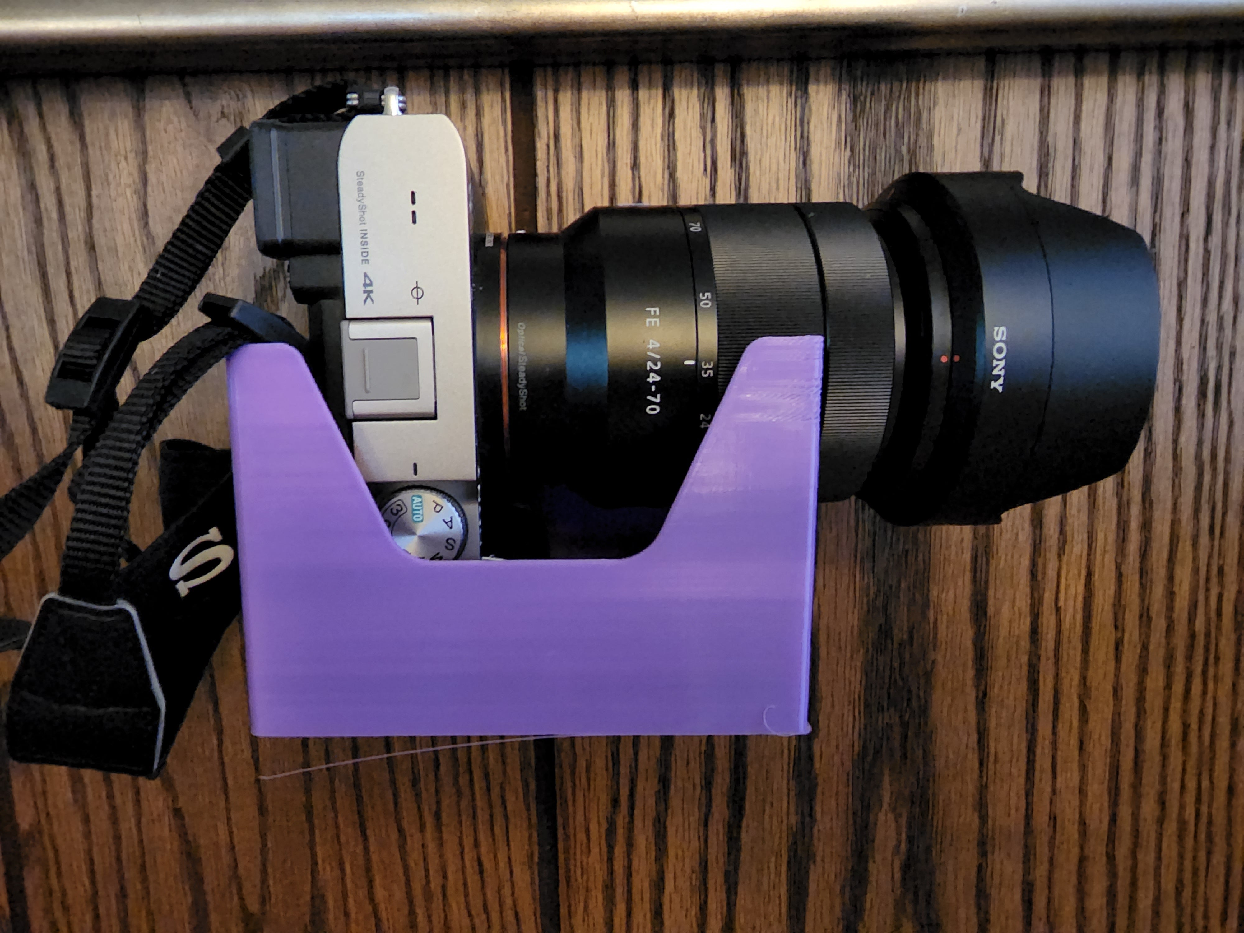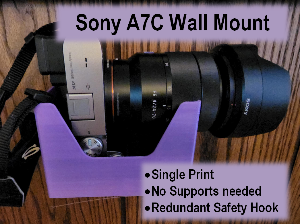 Questo è un semplice supporto da parete per la fotocamera Sony A7C (e probabilmente anche per altri modelli). Aiuta a tenere la fotocamera fuori dalla portata dei più piccoli e la rende comodamente accessibile per le occasioni fotografiche spontanee.