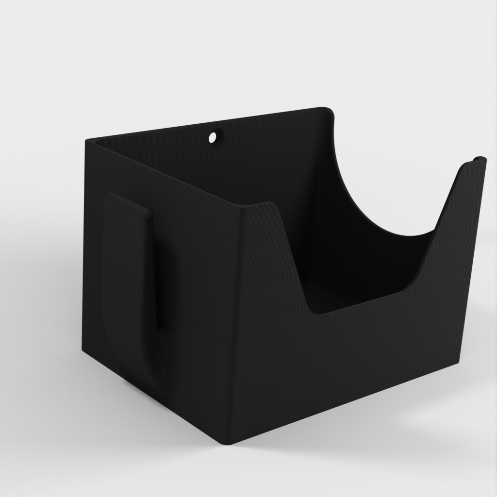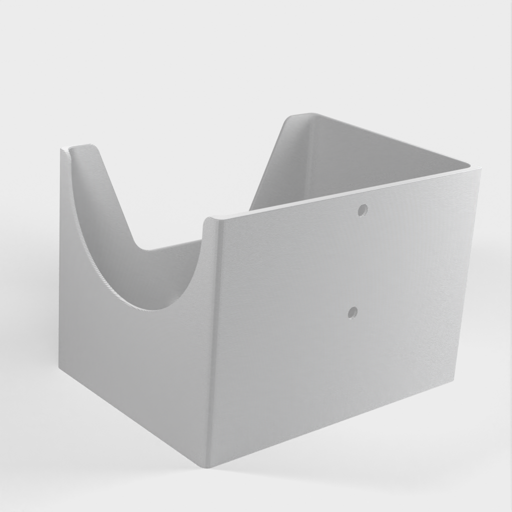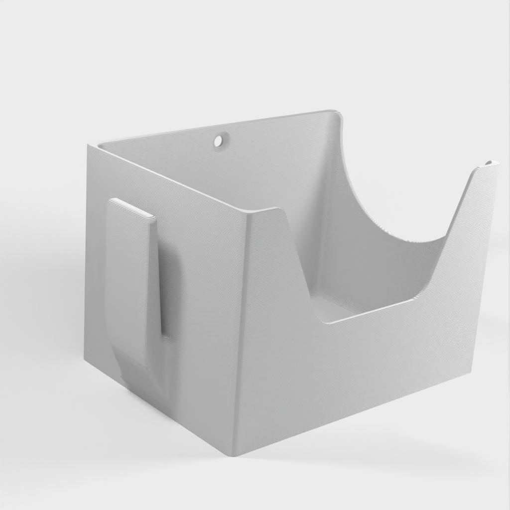 Il supporto può essere montato a parete con 1 o 2 viti e include un gancio di riserva per il laccetto da collo, nel caso in cui questo scivoli dalla mano quando lo si inserisce o lo si toglie dal supporto (è importante indossare prima il laccetto da collo perché questa attenuazione della ridondanza sia efficace).