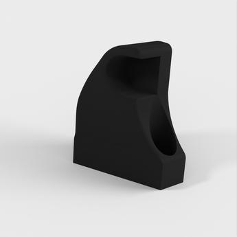 Supporto minimalista per una chitarra elettrica, dove la chitarra è appesa alla staffa per le cinghie. Il supporto è progettato in base al fatto che i supporti per le cinghie siano di 13 mm.