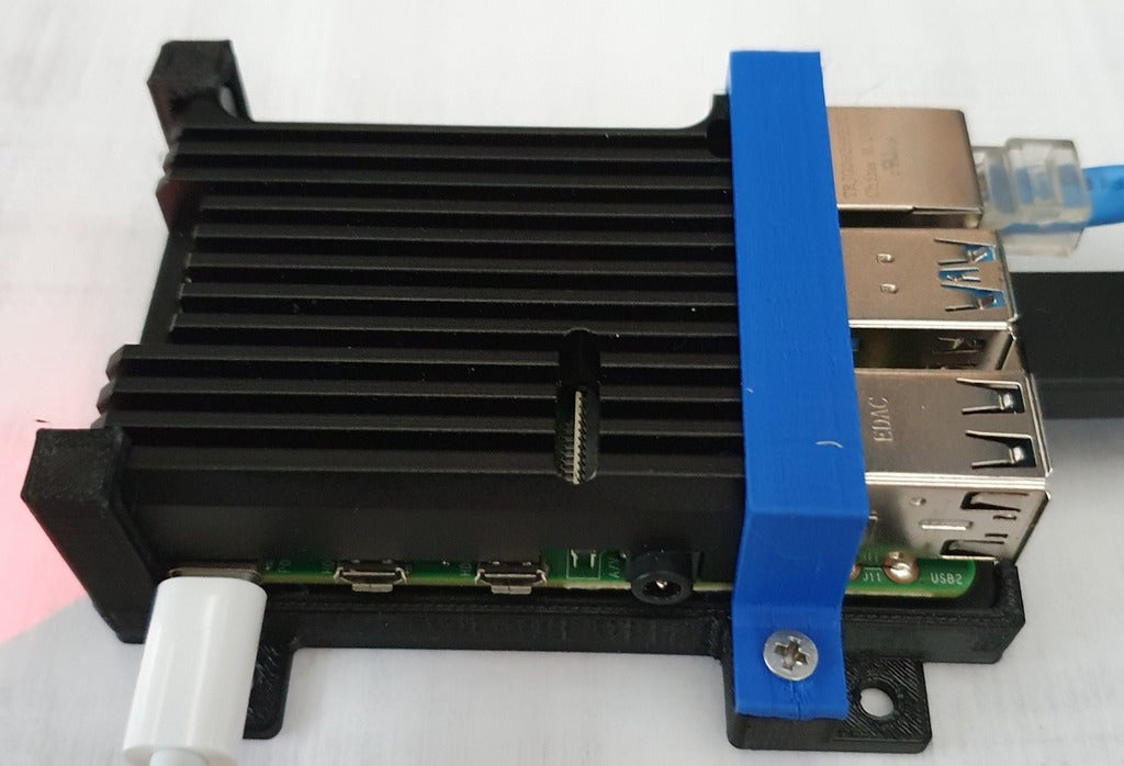 - Progettato per il montaggio sicuro di un Raspberry Pi 4 che utilizza un case di raffreddamento.
