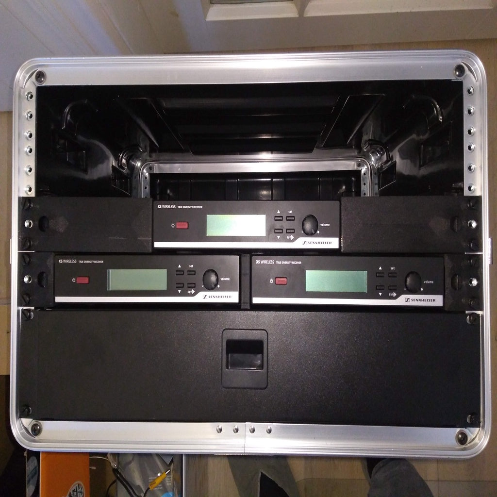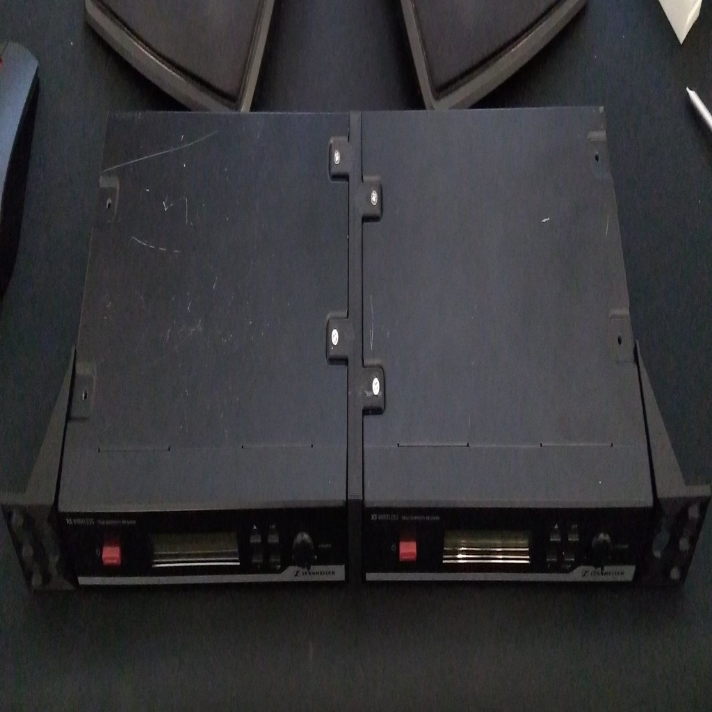 Si tratta di staffe per montaggio a rack per ricevitori Sennheiser EM 10, i ricevitori standard per i microfoni wireless della serie XS (ora sostituiti dalla serie XSW). Sono inclusi design sia per il montaggio di una singola unità in un rack da 19 pollici sia per il montaggio di due unità affiancate in un singolo spazio rack.