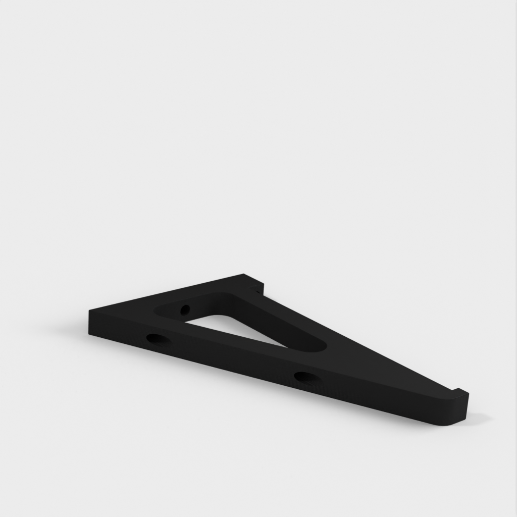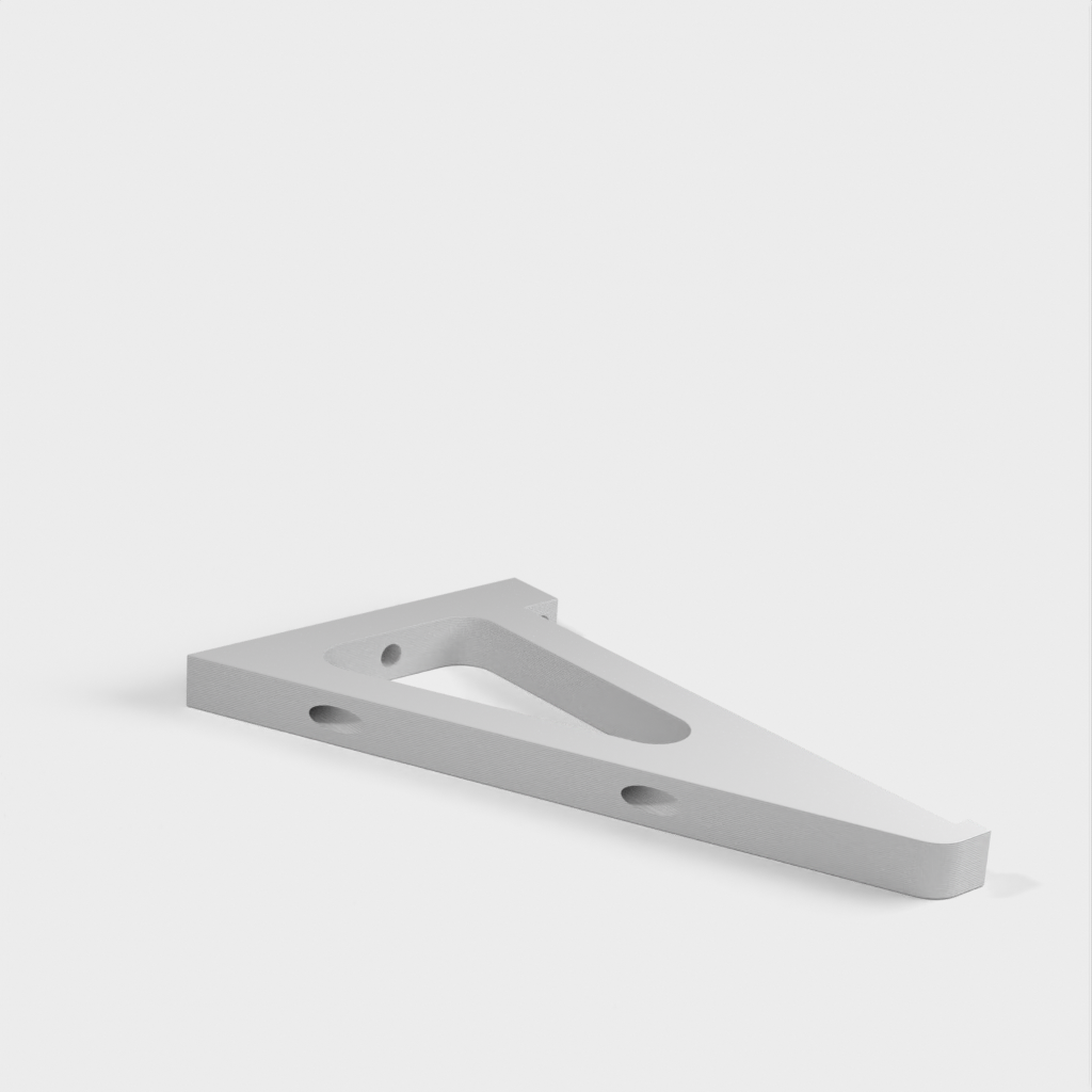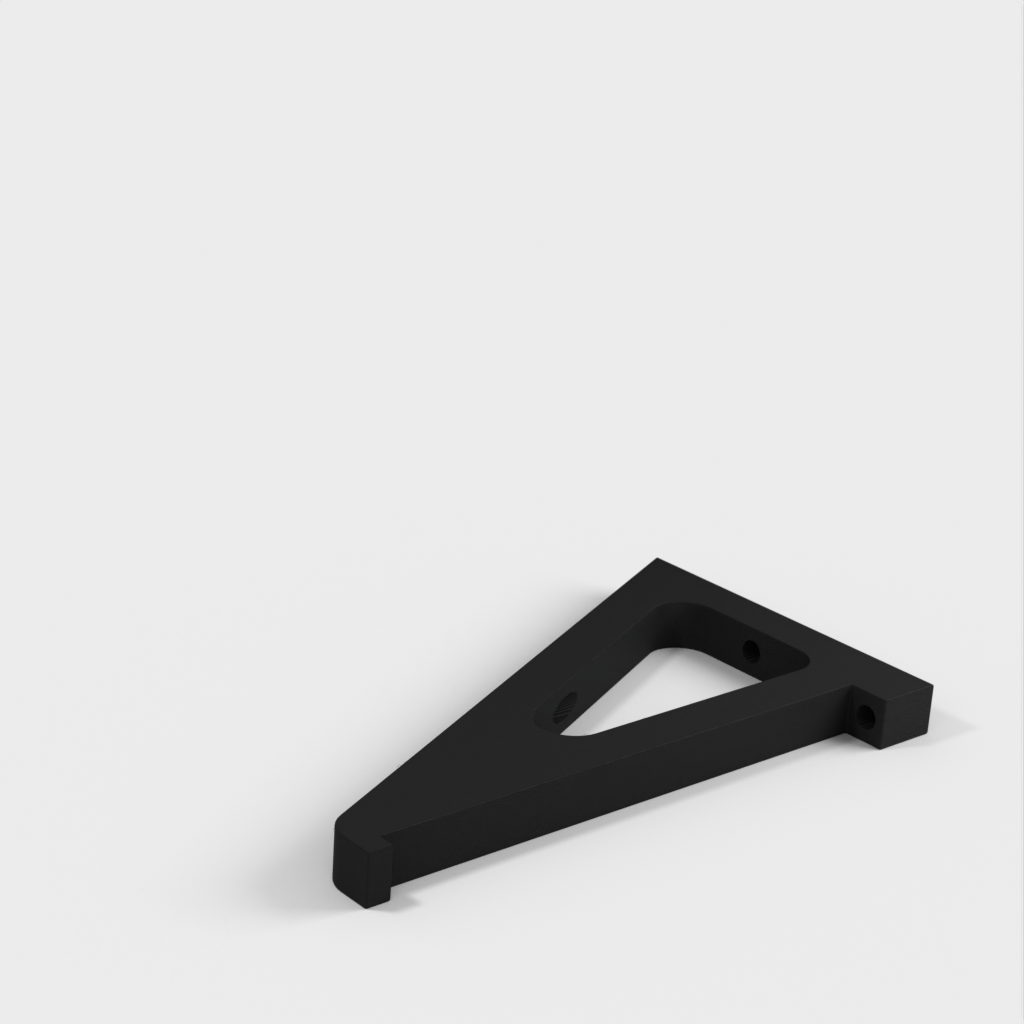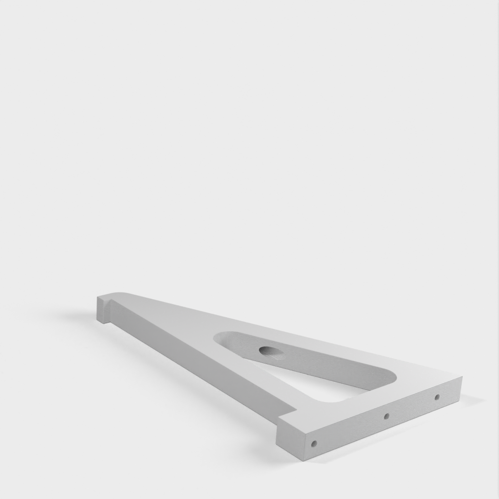 Questa mensola è progettata per adattarsi a uno scaffale standard da 8 pollici che si trova nella maggior parte dei negozi di bricolage. Lascia uno spazio tra la mensola e la parete per il cablaggio. La mensola si fissa alla parete con i tasselli a secco mostrati nell'immagine. Ci sono tre posizioni per ogni staffa.