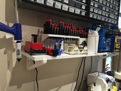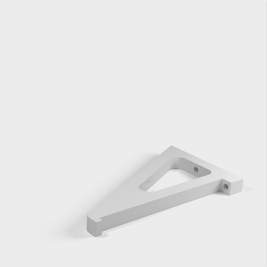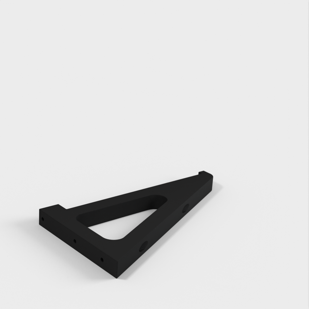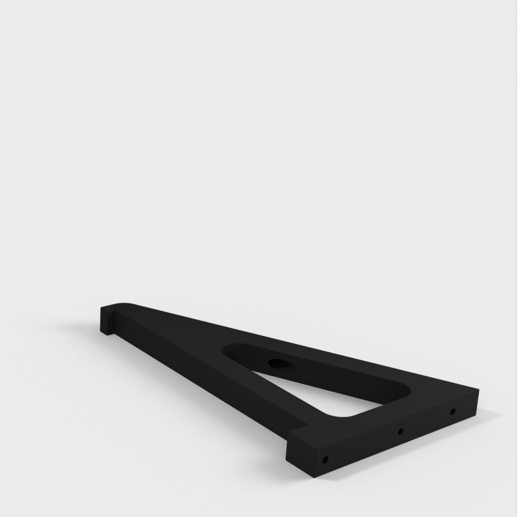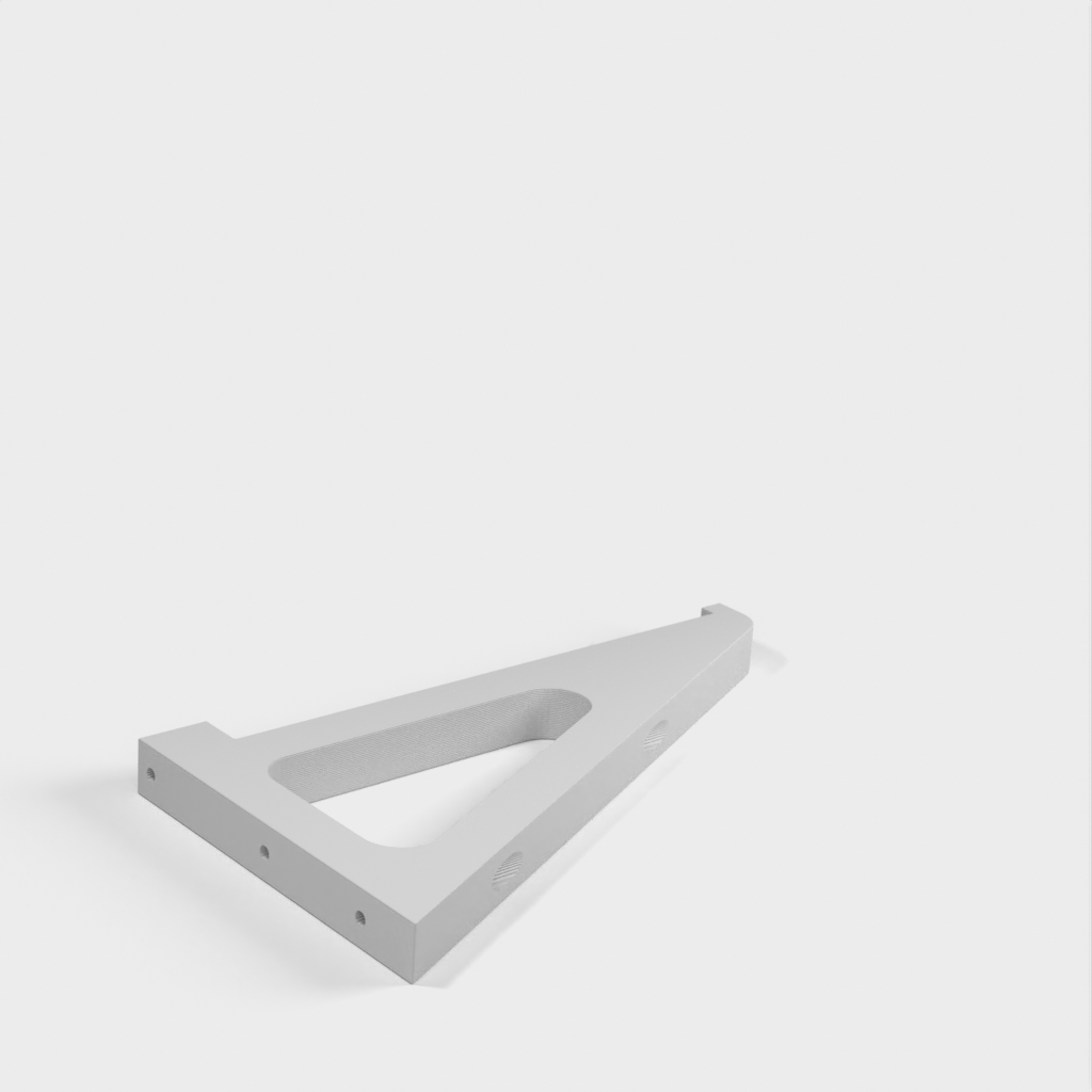 Questa mensola è progettata per adattarsi a uno scaffale standard da 8 pollici che si trova nella maggior parte dei negozi di bricolage. Lascia uno spazio tra la mensola e la parete per il cablaggio. La mensola si fissa alla parete con i tasselli a secco mostrati nell'immagine. Ci sono tre posizioni per ogni staffa.