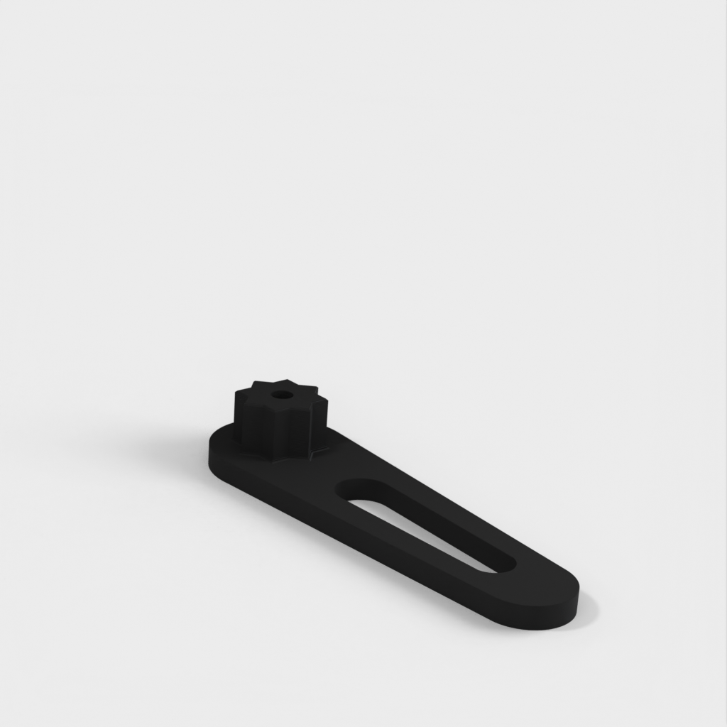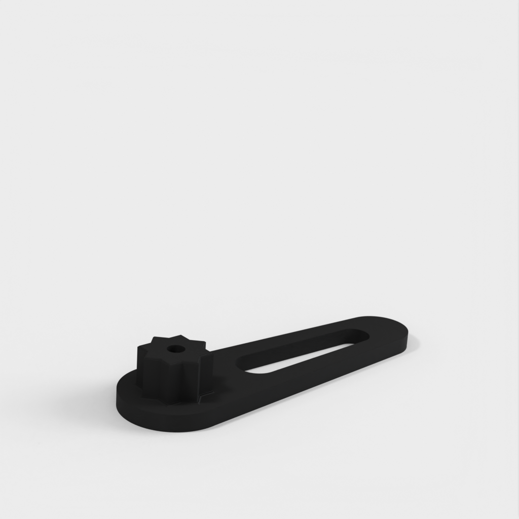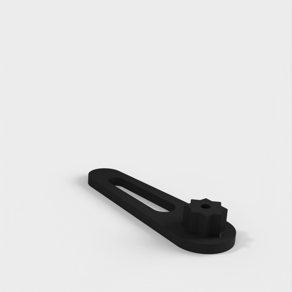 Una chiave inglese in plastica da utilizzare su una barca con capsule tipo maniglie per verricello. Le maniglie del verricello danneggiano l'alluminio morbido e forniscono una leva eccessiva, causando un serraggio eccessivo e il bloccaggio. Questa chiave è corta perché le capsule sono spesso posizionate in posizioni scomode e per evitare un serraggio eccessivo. Inoltre, è molto più economica delle maniglie del verricello e delle chiavi in acciaio inossidabile quando cadono in mare.