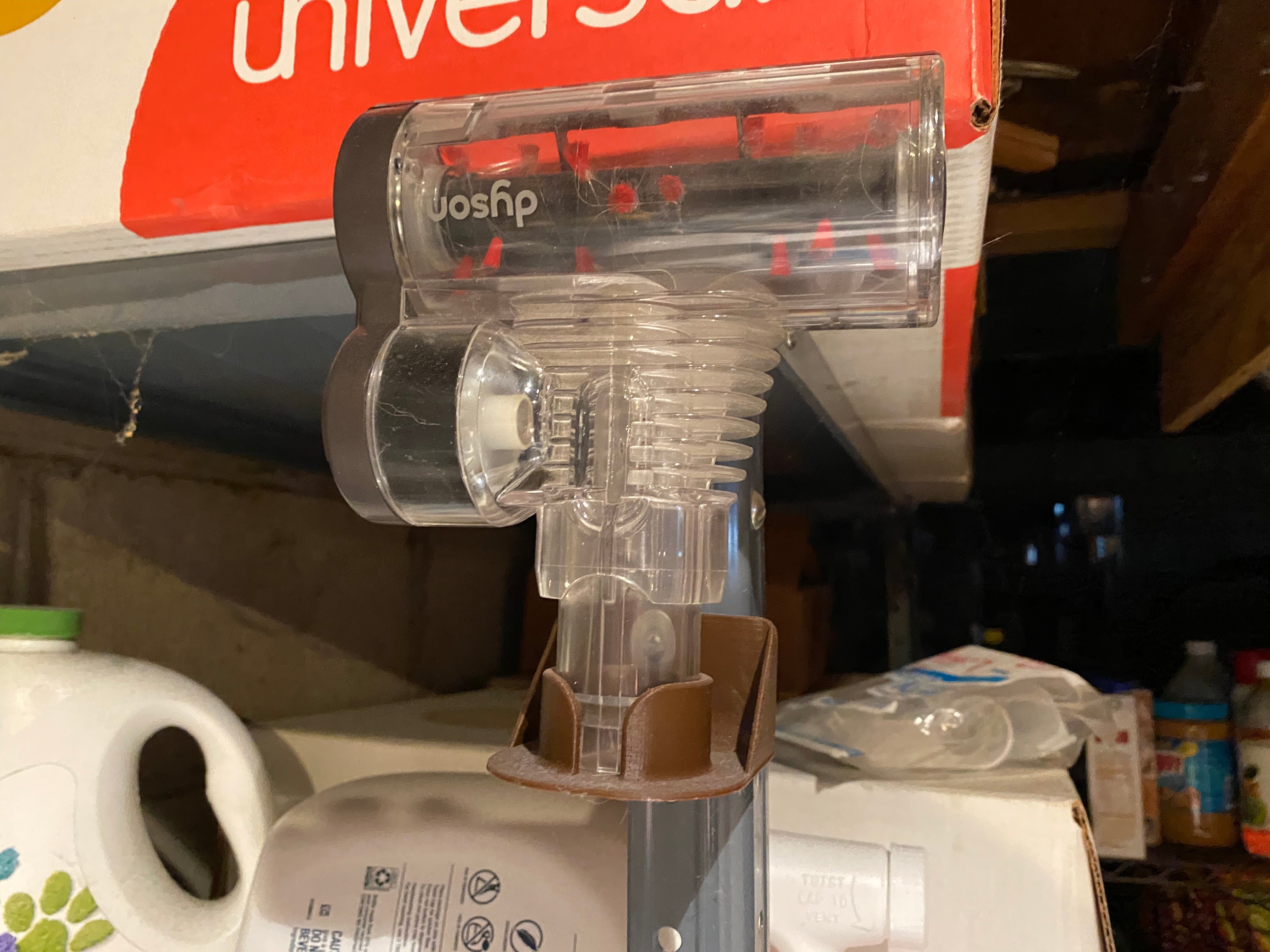 Si tratta di un supporto a parete per un singolo utensile per aspirapolvere Dyson. Ho acquistato l'accessorio per l'aspirapolvere fornito con il Dyson Animal, ma l'aspirapolvere non aveva un contenitore a bordo e io non lo uso spesso, quindi lo ripongo in cantina.