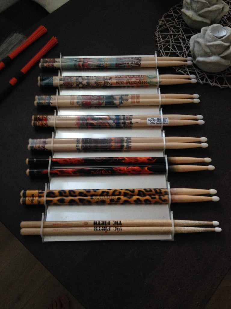Semplice supporto a parete che può contenere fino a 5B bacchette con un diametro massimo di 17 mm. Questo design compatto consente un facile accesso alle bacchette extra, in modo da avere sempre un backup pronto durante il gioco. Base in alluminio verniciata a spruzzo in nero per un aspetto aerodinamico e professionale.