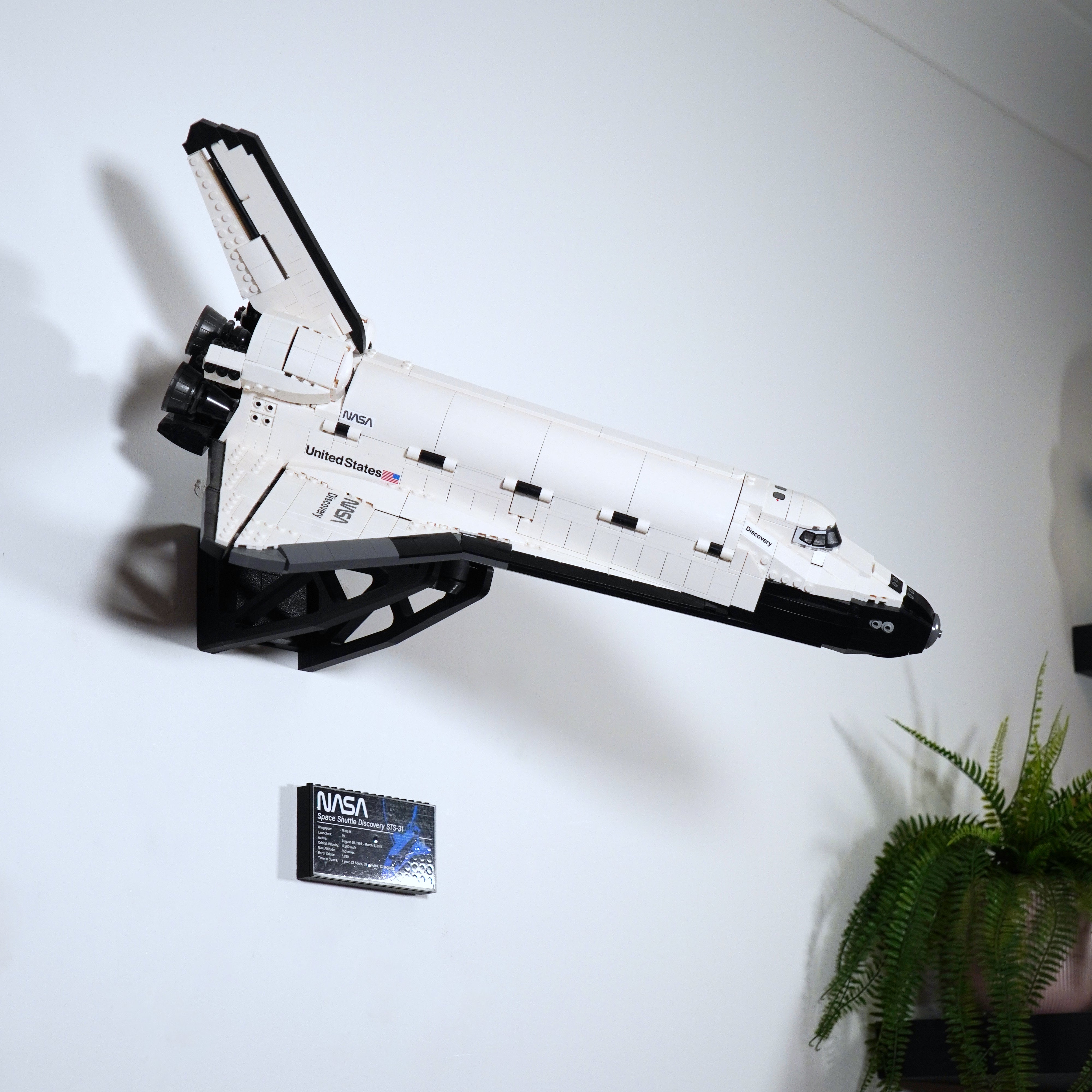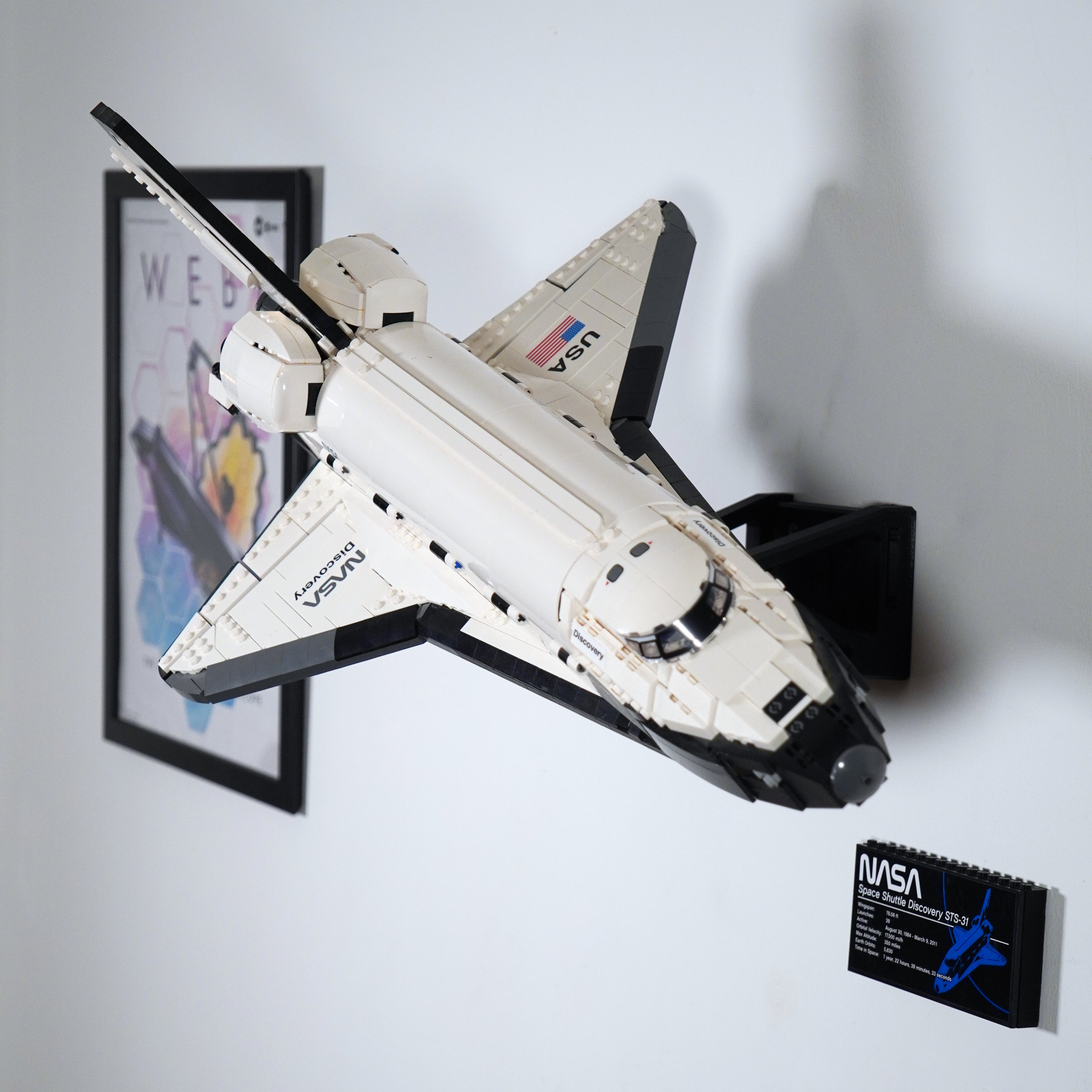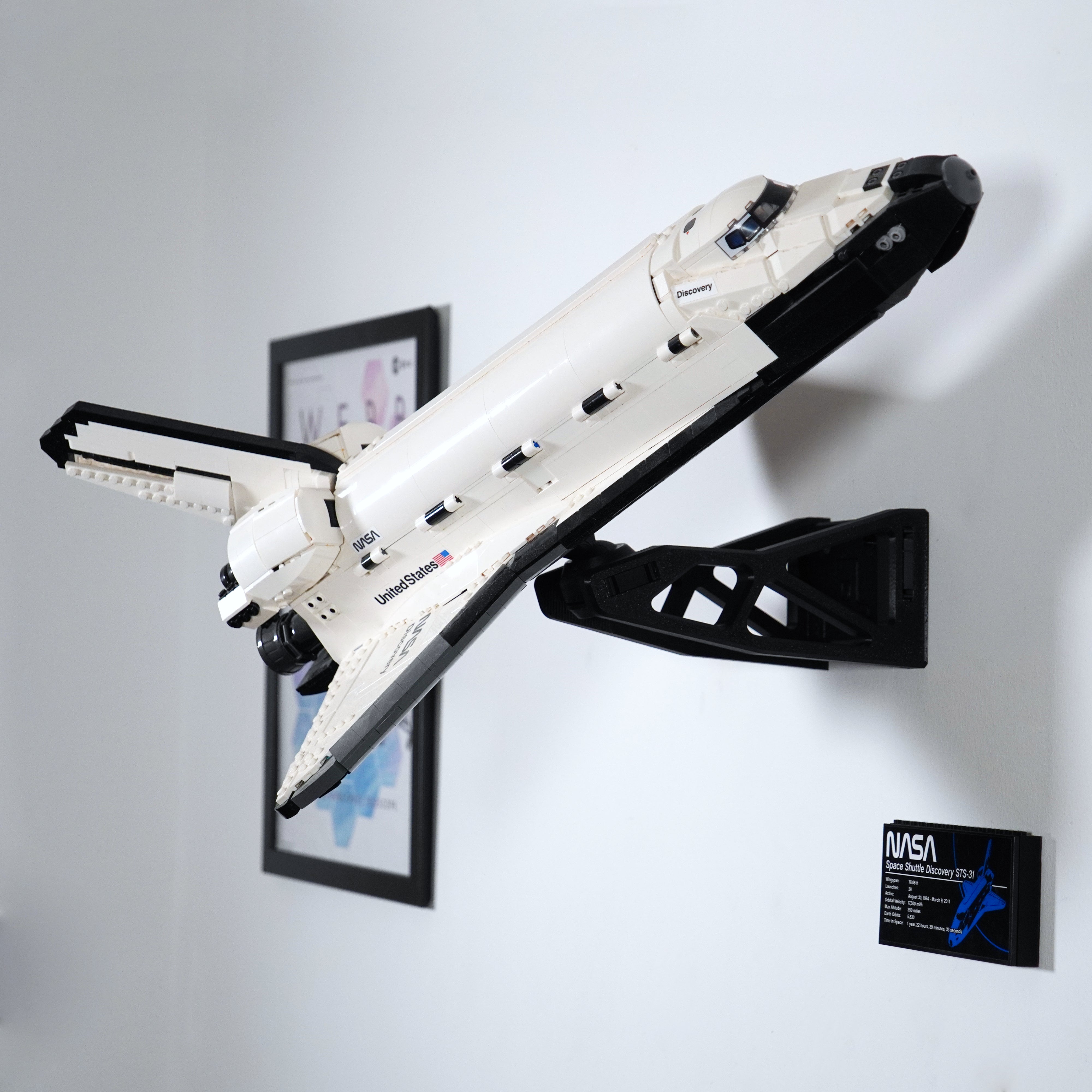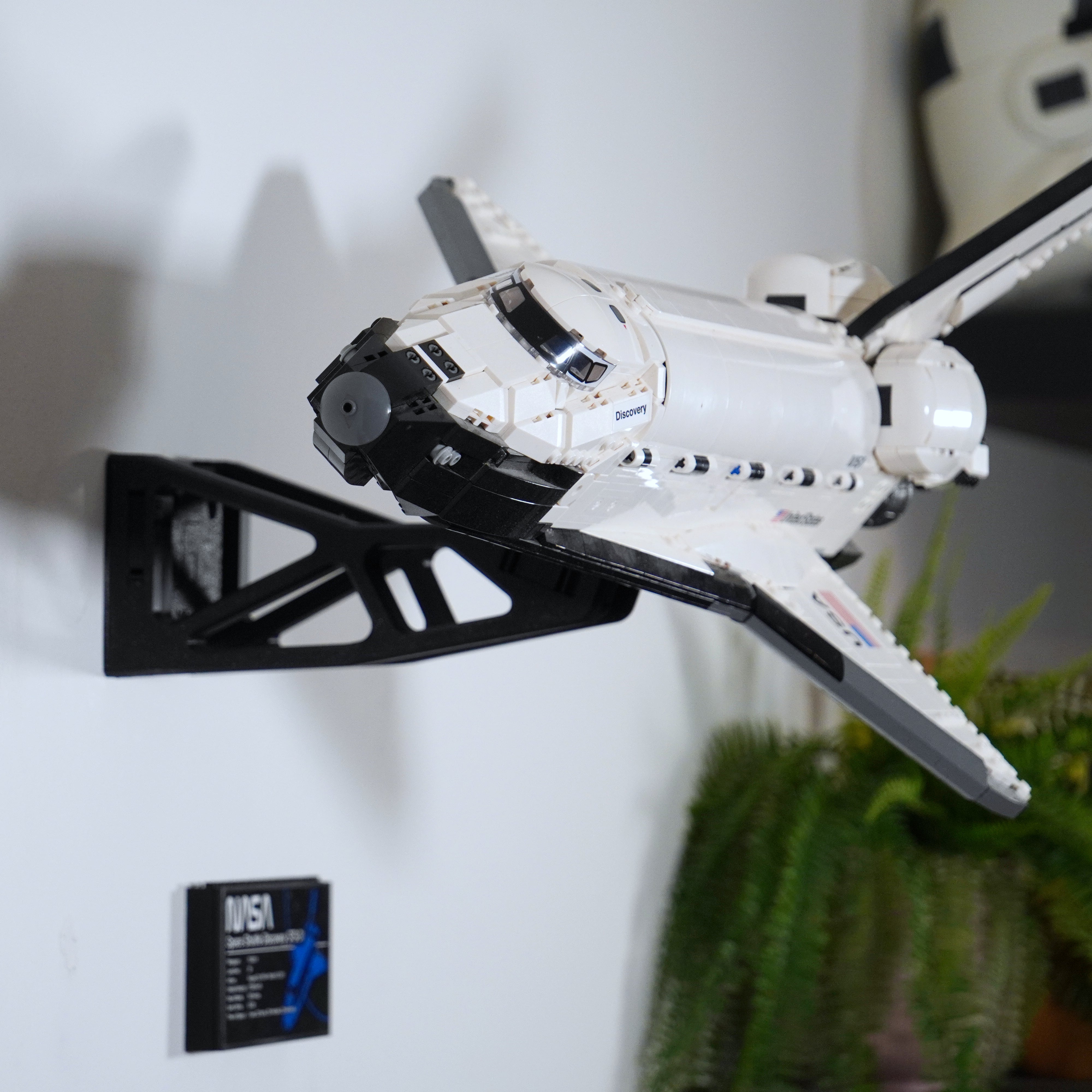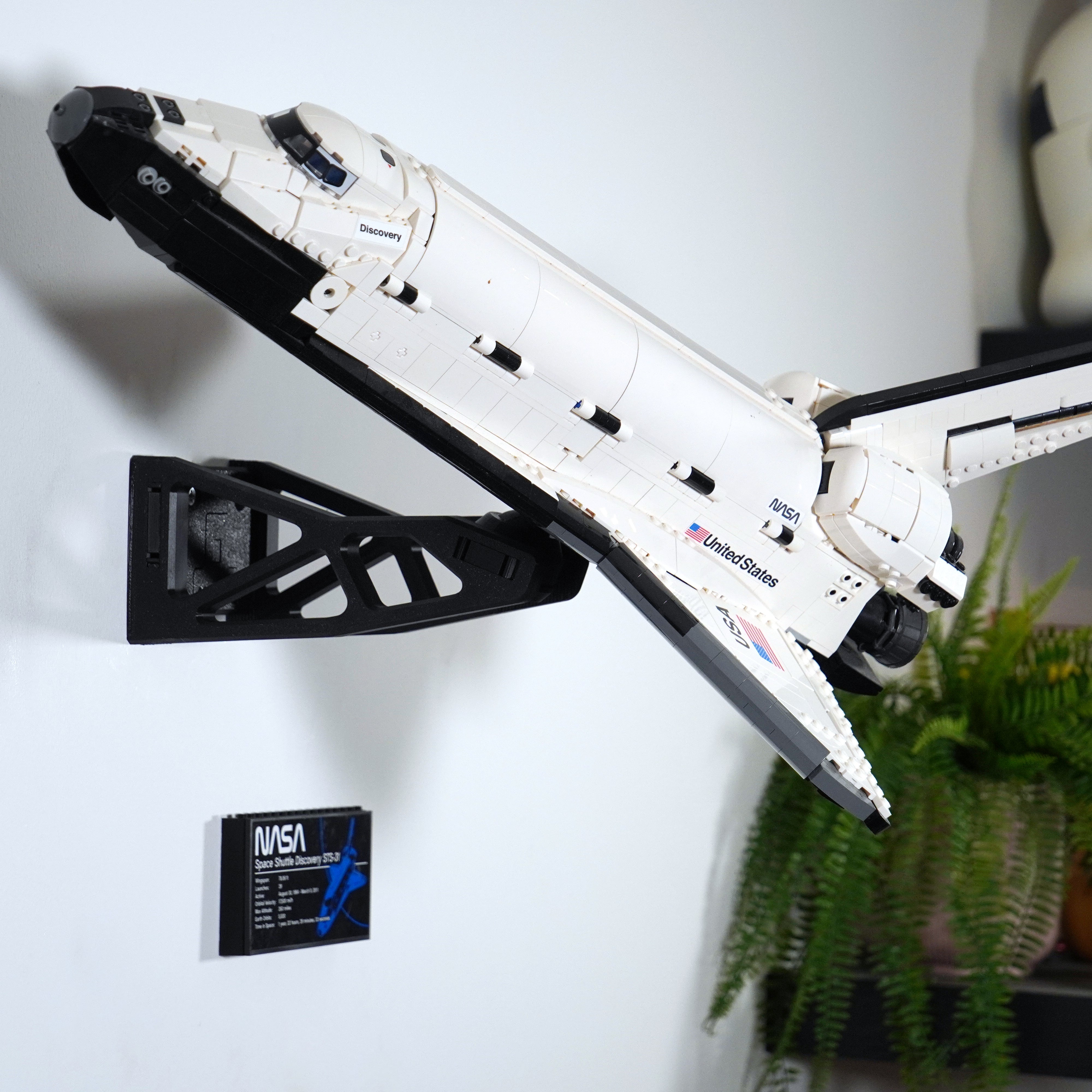 - Supporto a parete per LEGO Space Shuttle Discovery 10283, che garantisce un'esposizione stabile.