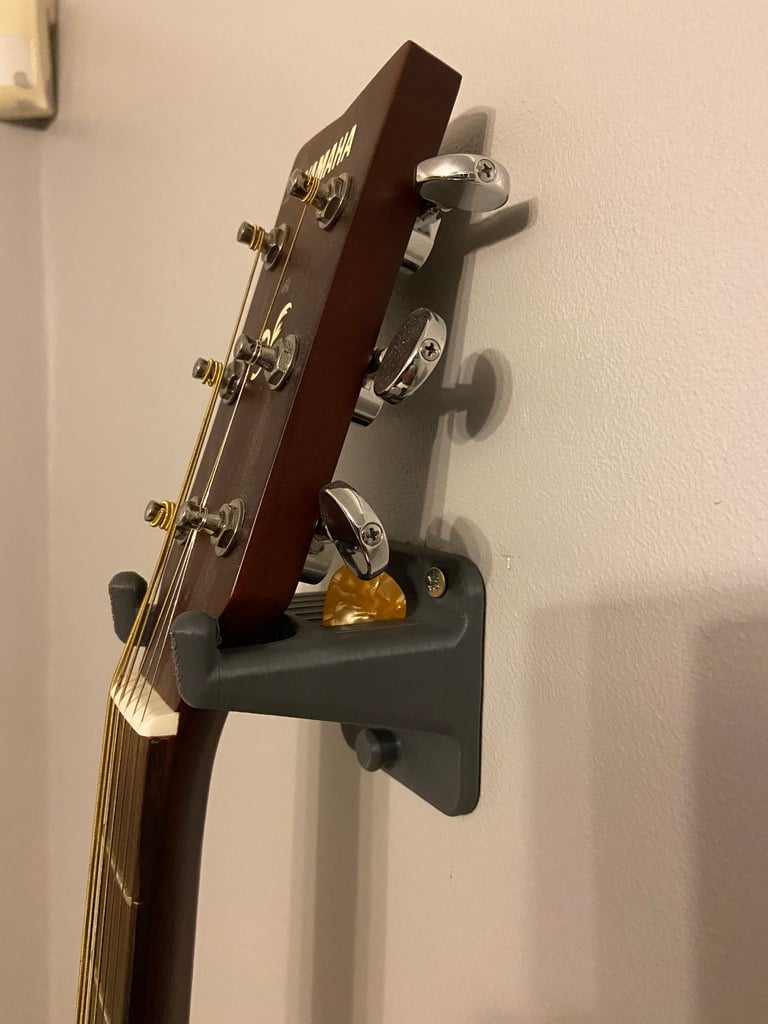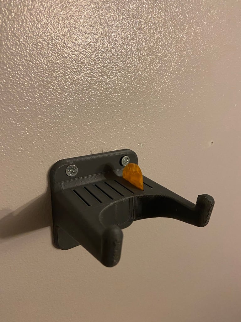Montaggio a parete per chitarra con spazio per plettri e tracolla