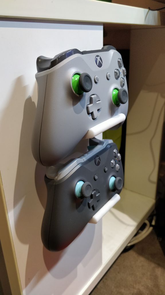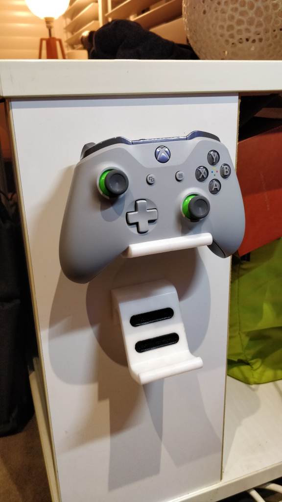 Questo supporto a parete minimalista è progettato per riporre i controller Xbox One S e Xbox 360 in modo organizzato e facilmente accessibile. La robusta costruzione assicura che i controller rimangano saldamente in posizione e contribuisce a un'area di gioco ordinata.
