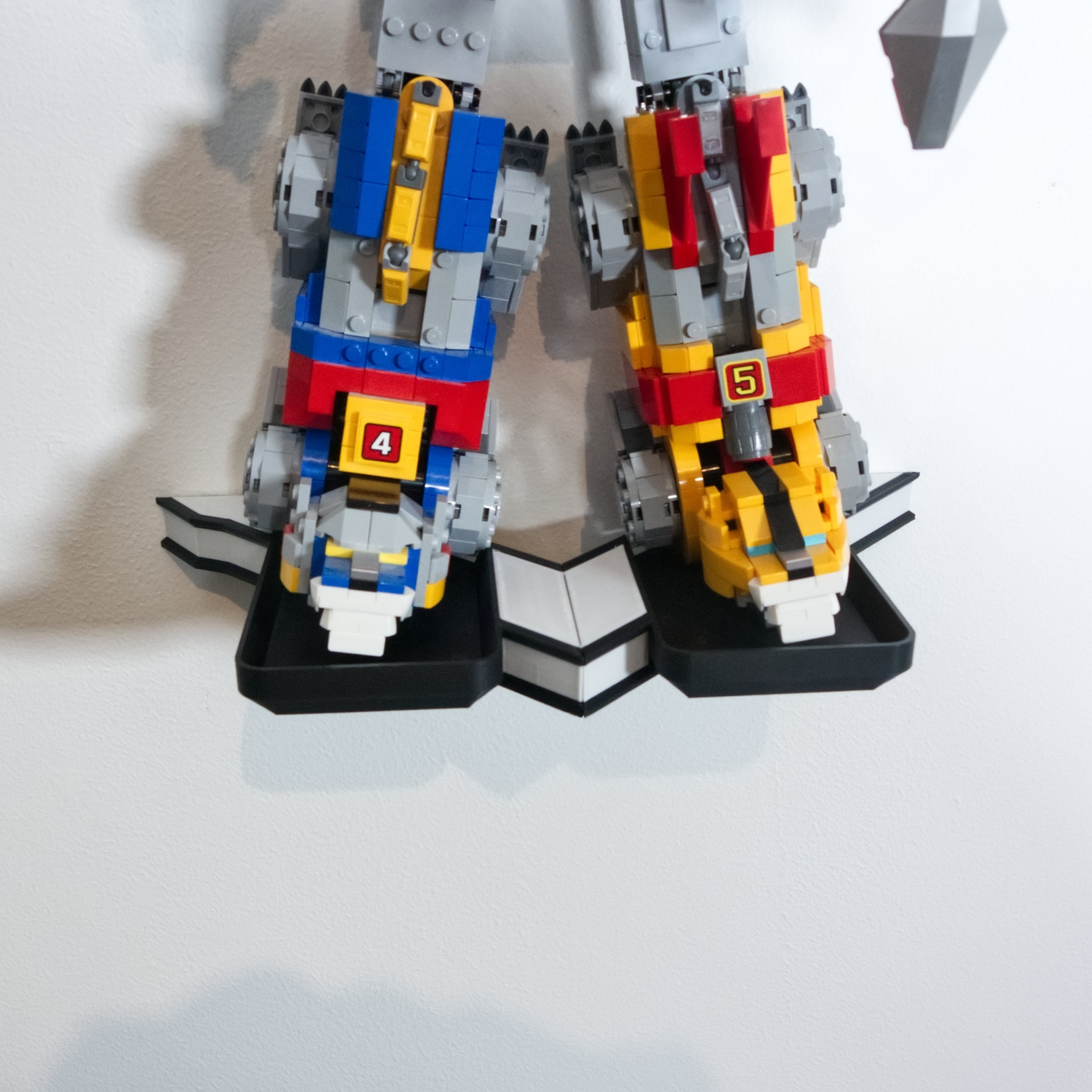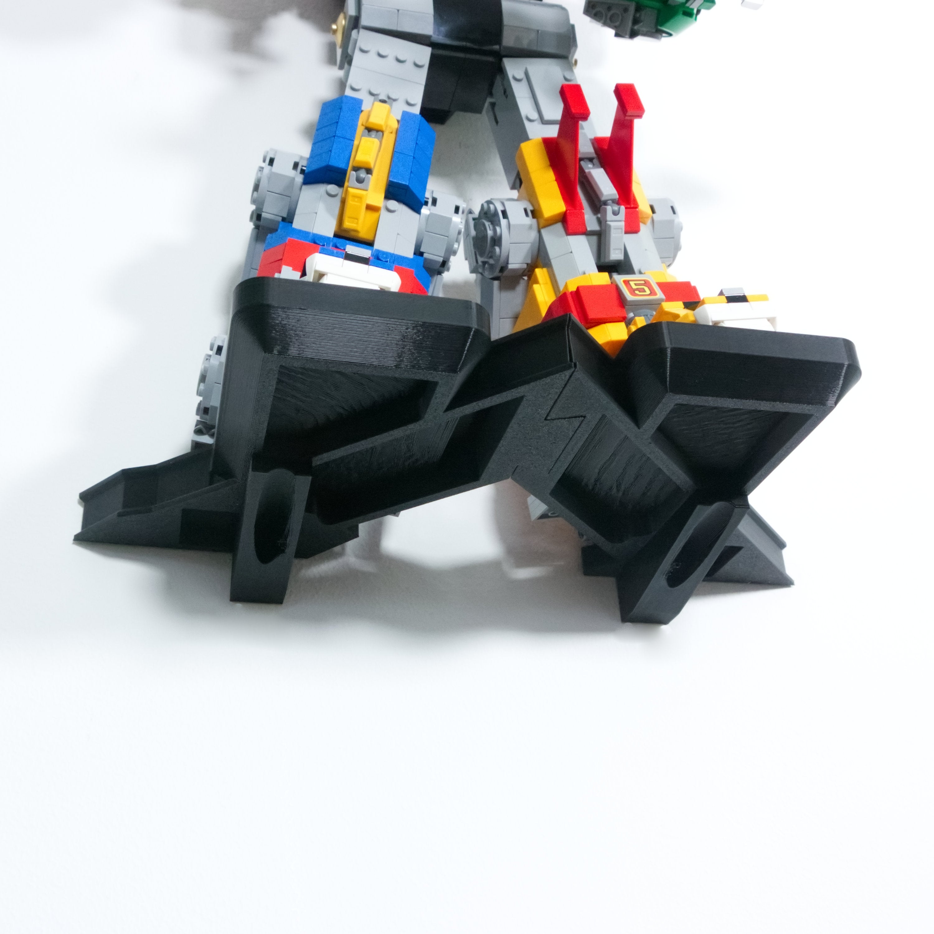 Mostra il tuo Voltron 21311 con questo robusto supporto a V da parete. Il design supporta il modello intorno al petto per garantire stabilità, mentre la base viene montata sotto i piedi. Questo supporto offre una soluzione sicura e presentabile per appendere il tuo modello al muro.