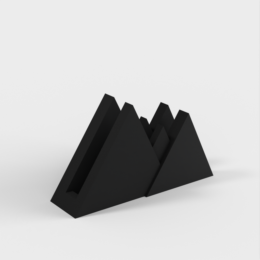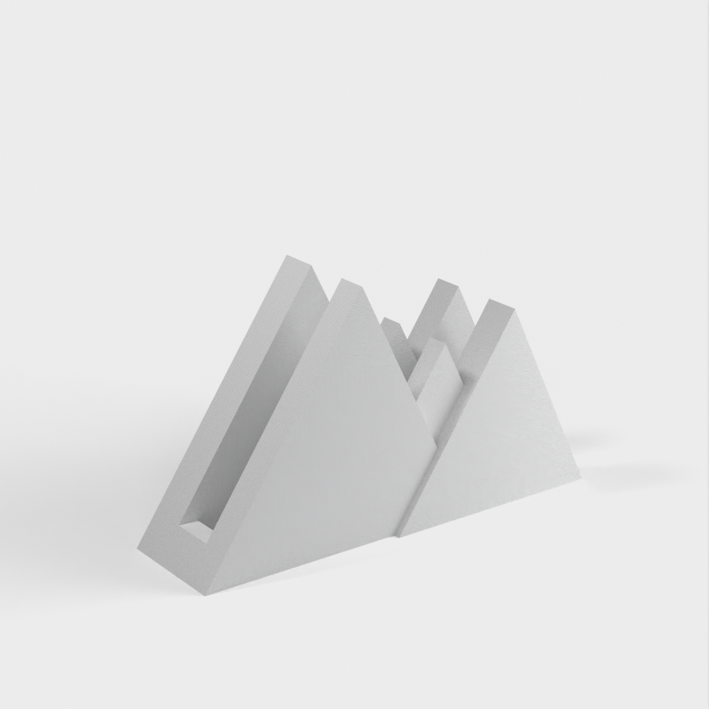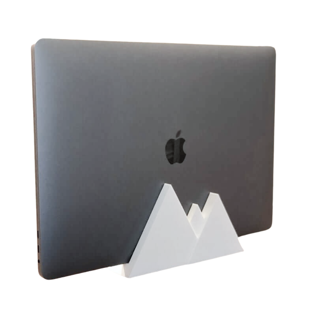 Un supporto verticale semplice ma robusto per un Macbook Pro con un paesaggio montano integrato. Il foro in cui è inserito il Macbook è largo 1,62 cm e quindi adatto alla maggior parte dei modelli.