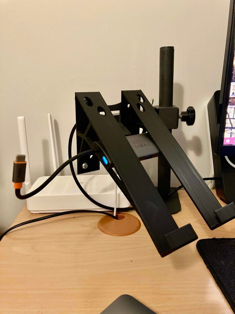Questo è un supporto/supporto per laptop VESA economico progettato per essere montato su supporti VESA verticali. Il modello è disponibile in due metà per garantire una produzione efficiente in termini di costi e tempi. Supporta facilmente MacBook Air 2020, ma è compatibile con la maggior parte dei laptop con supporto VESA. Per montare questo supporto, si consiglia di utilizzare 4 viti e dadi M4.