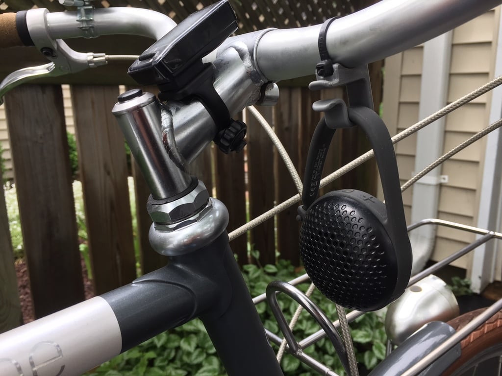 La staffa tiene saldamente in posizione l'altoparlante, impedendogli di scivolare lungo il manubrio e di urtare il cannotto di sterzo. Allo stesso tempo, il design è realizzato in modo che sia facile montare e smontare l'altoparlante secondo necessità. L'installazione è semplice e richiede solo una fascetta per fissare saldamente il supporto al manubrio della bici.