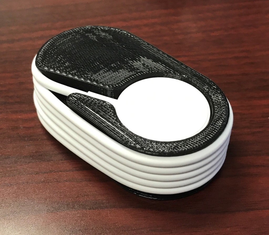 Questo è un supporto per il cavo di ricarica dell'Apple Watch. Con questo supporto è possibile riporre ordinatamente il caricabatterie quando non lo si utilizza. È una soluzione semplice e pratica per mantenere in ordine la scrivania o il comodino.