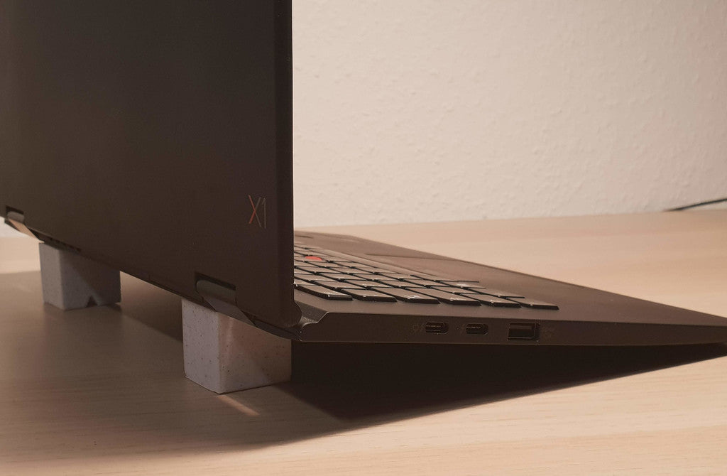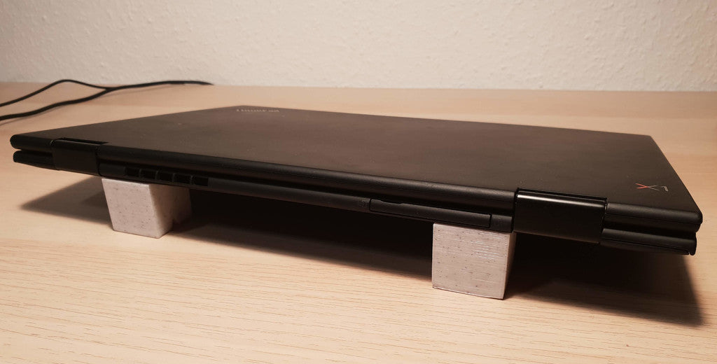 Si tratta di un semplice supporto universale per laptop che offre un angolo di 10 gradi. Per la maggior parte dei laptop, 2 di questi dovrebbero essere sufficienti a fornire un buon supporto. Le dimensioni sono quelle di un cubo di 30 mm, l'altezza è sufficiente per essere a circa 20 cm dall'inizio del laptop.