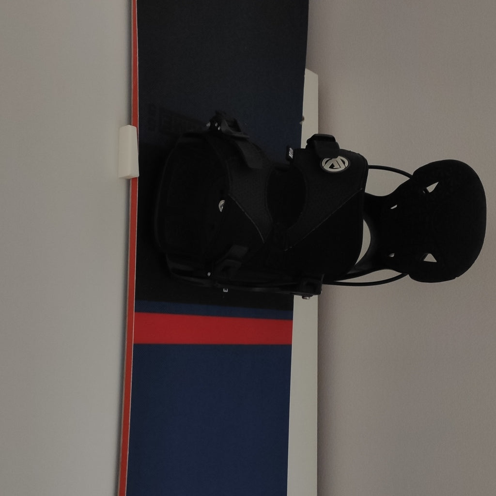 Semplice montaggio a parete per il tuo snowboard. Questo supporto è progettato per adattarsi a tutti i tipi di snowboard. Devi solo misurare la distanza e montarlo in modo che la tavola si blocchi e possa essere rimossa sollevandola.