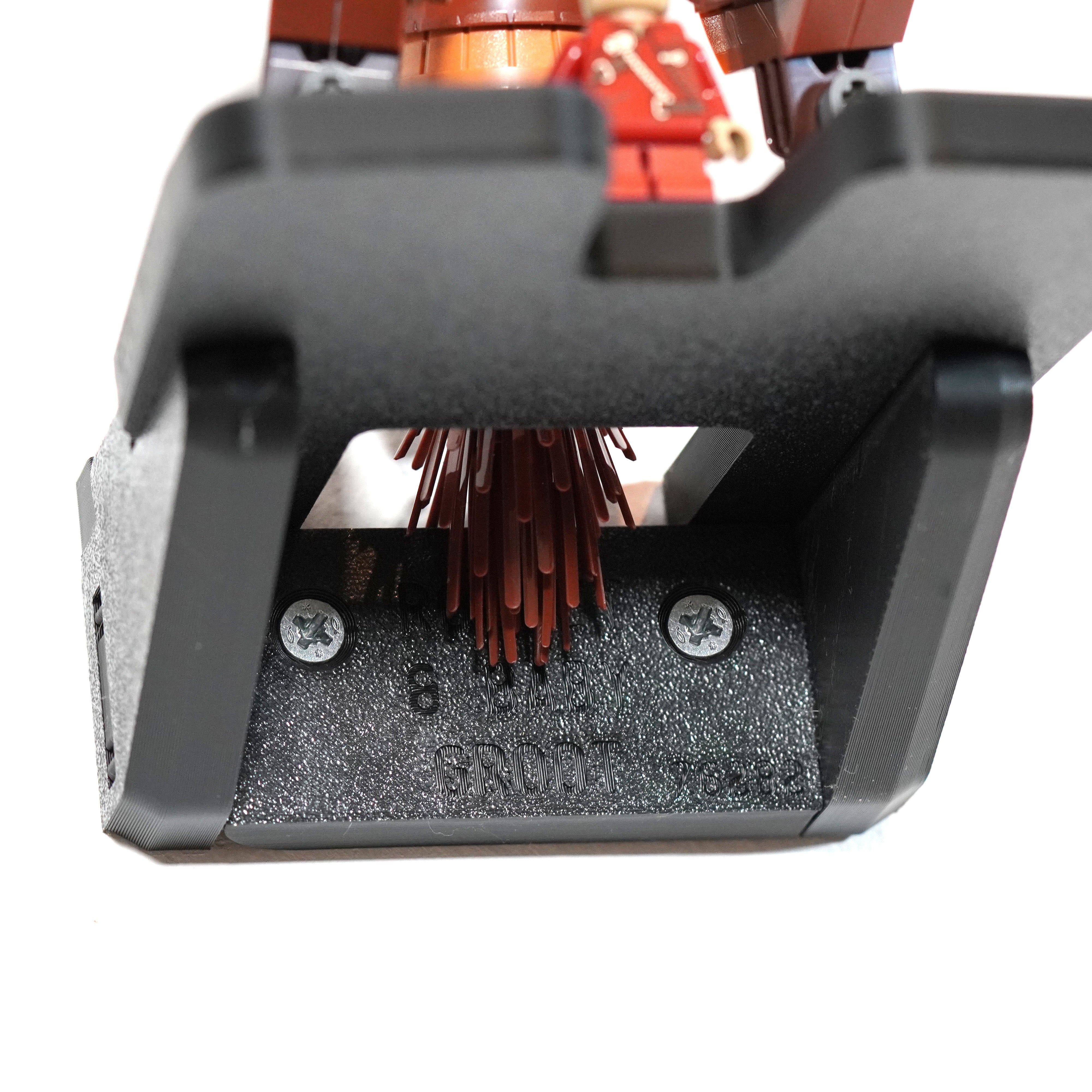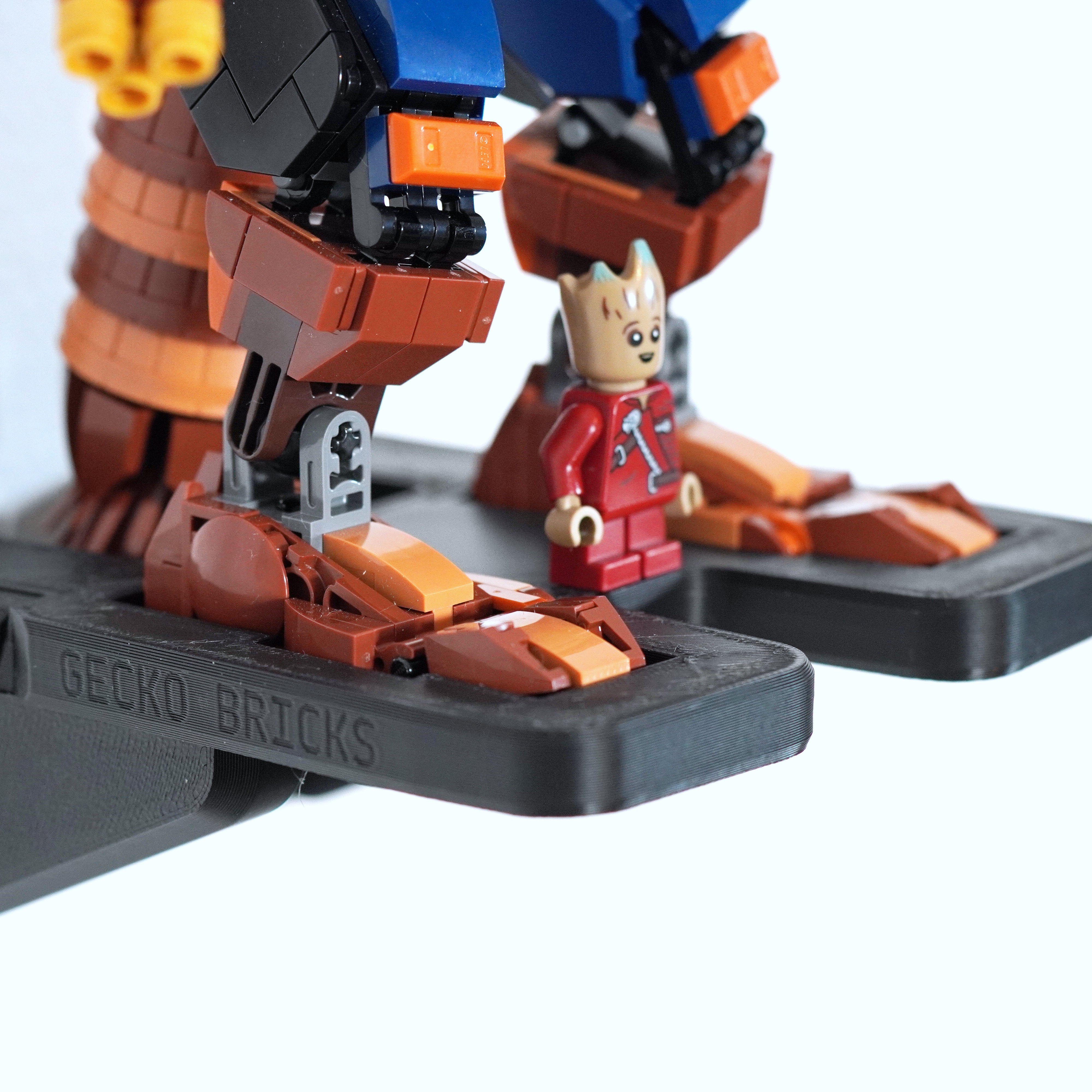 Questo supporto da parete è progettato per esporre in modo sicuro il set 76282 di Marvel Rocket e Baby Groot. La staffa si monta con due viti e facilita la rimozione del modello quando necessario. Inoltre, il design include un punto di montaggio separato per la figura di Baby Groot.