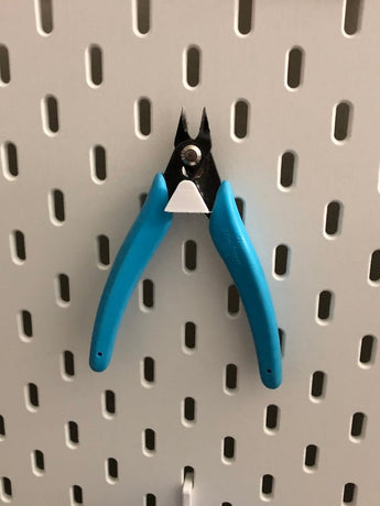 Questo pratico supporto è progettato specificamente per le tue tronchesi e si adatta perfettamente alla tua bacheca IKEA Skadis. Fornisce una soluzione di archiviazione organizzata e facilmente accessibile per i tuoi utensili da taglio, in modo che siano sempre a portata di mano quando lavori con elettronica, gioielli o altre attività di precisione in cui hai bisogno di un supporto per fili affidabile. Sfruttando il sistema Skadis, il tuo spazio di lavoro viene massimizzato e i tuoi strumenti vengono tenuti ordinatamente in posizione. La versione 2 del supporto è progettata per avere una posizione fissa e non ruota, garantendo che le tue tronchesi rimangano posizionate stabilmente nella direzione desiderata.