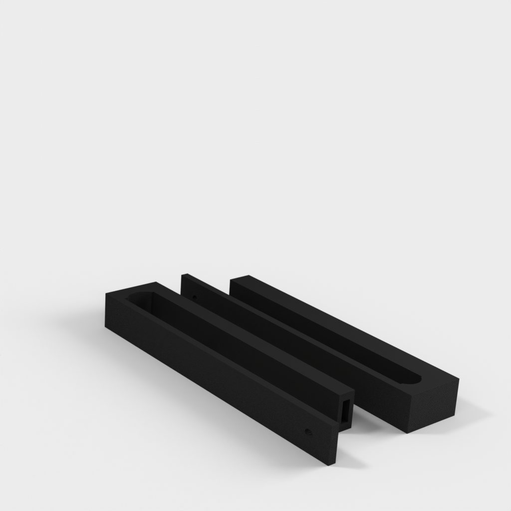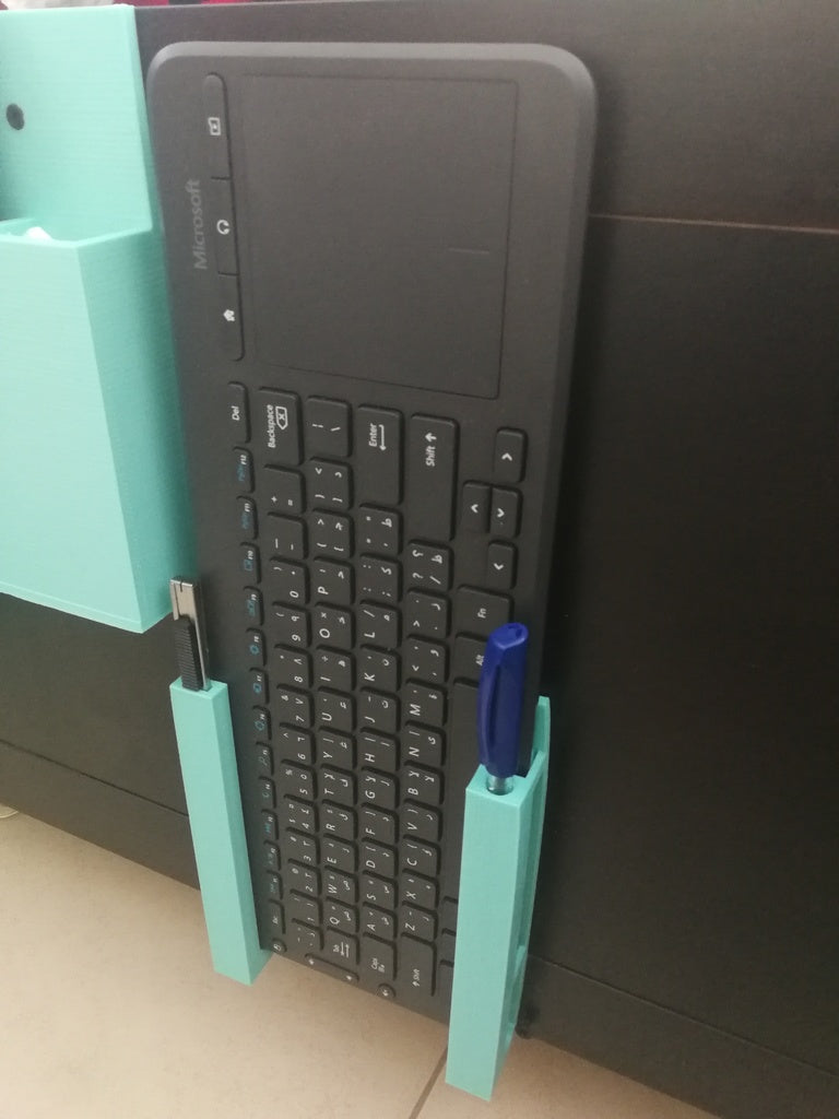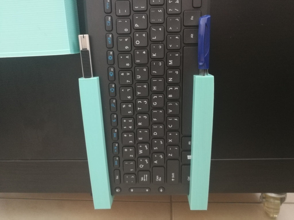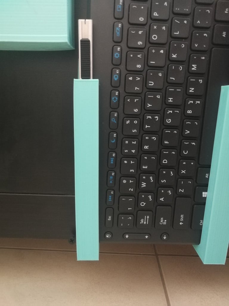 È una stampa in due parti, quindi puoi regolarla per adattarla a qualsiasi dimensione della tastiera. Tieni presente che le due parti non sono simmetriche; un lato è più largo dell'altro per accogliere la forma curva della tastiera. Facoltativamente, puoi importarlo in qualsiasi app di progettazione 3D per regolarlo in base alle tue esigenze.