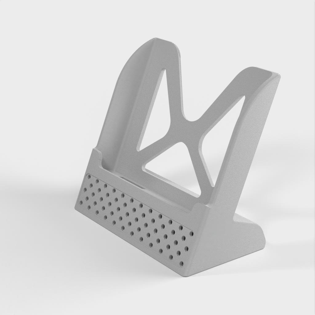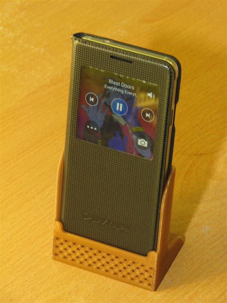 Questo supporto per telefono è ideale per un Samsung Galaxy Alpha con custodia S-view o per telefoni di dimensioni simili. Le dimensioni massime sono 70 mm di larghezza (2,75') x 13 mm di profondità (0,5'). Sono disponibili versioni con fori per l'altoparlante sul lato destro o sinistro.