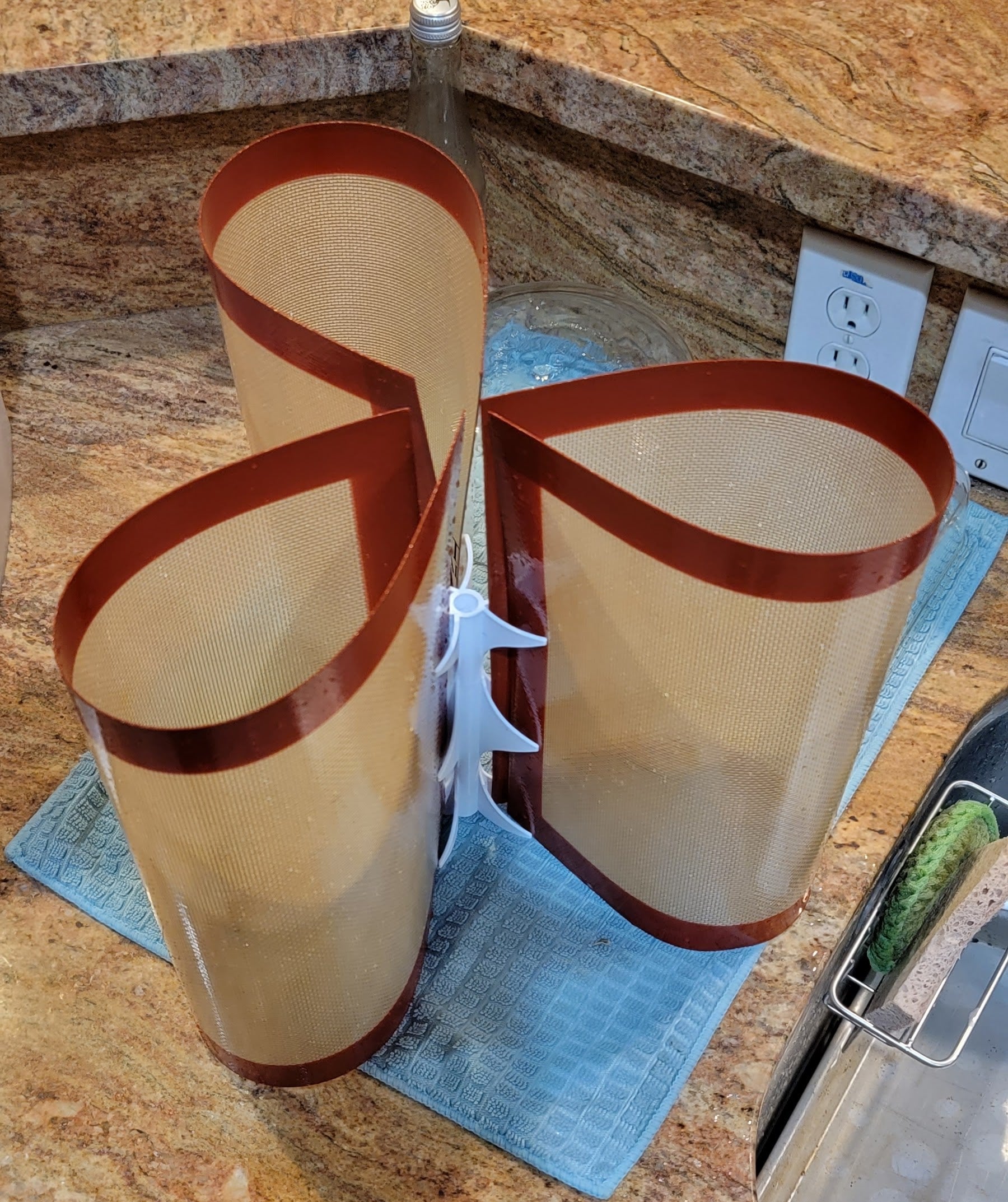 Che tu utilizzi i piccoli tappetini in silicone che spesso vengono forniti con gli essiccatori per congelamento HarvestRight o tappetini in silicone più grandi per teglie da forno, questo supporto offre una soluzione stabile e pratica. È uno strumento semplice ma efficace che migliora la manutenzione dei tuoi utensili da cucina.