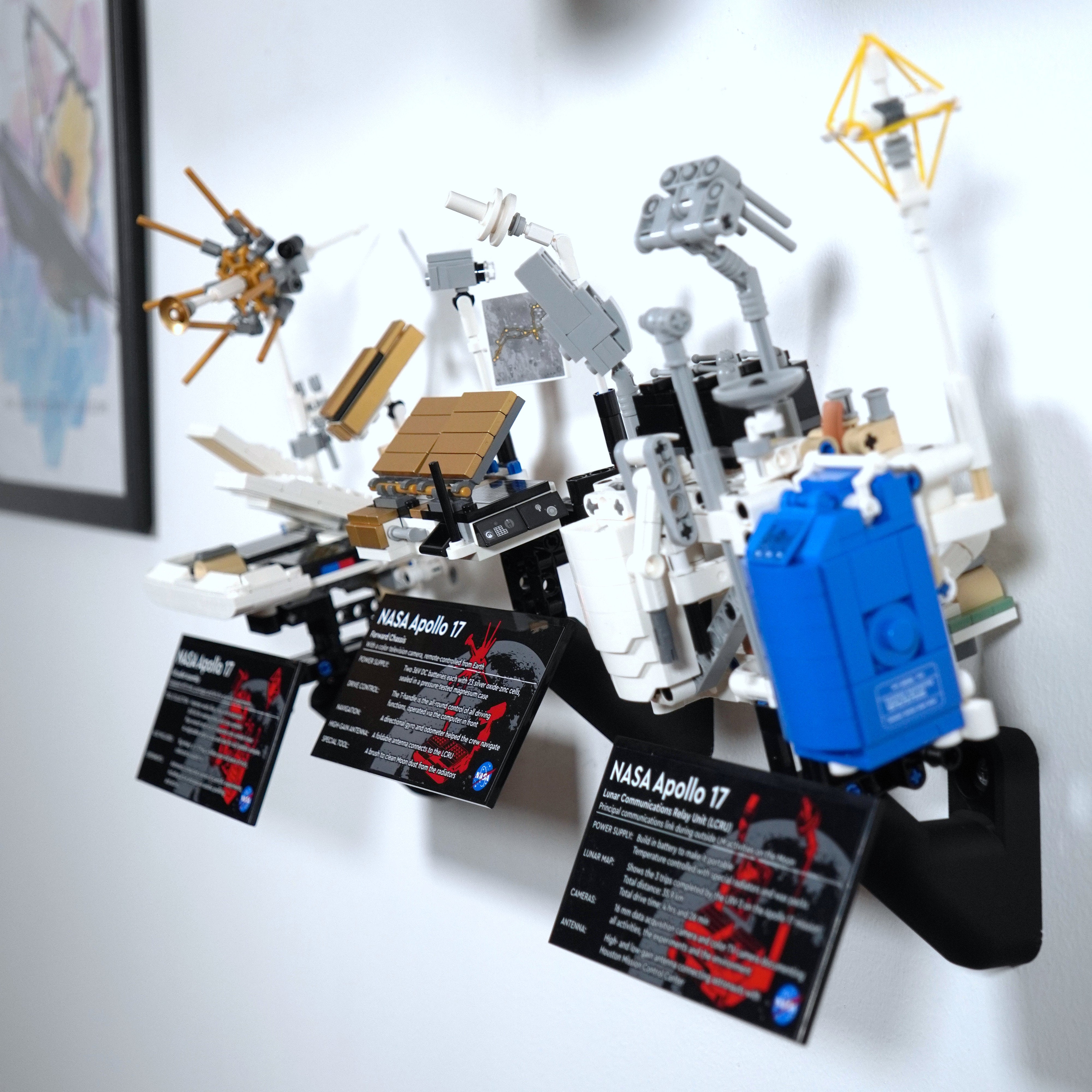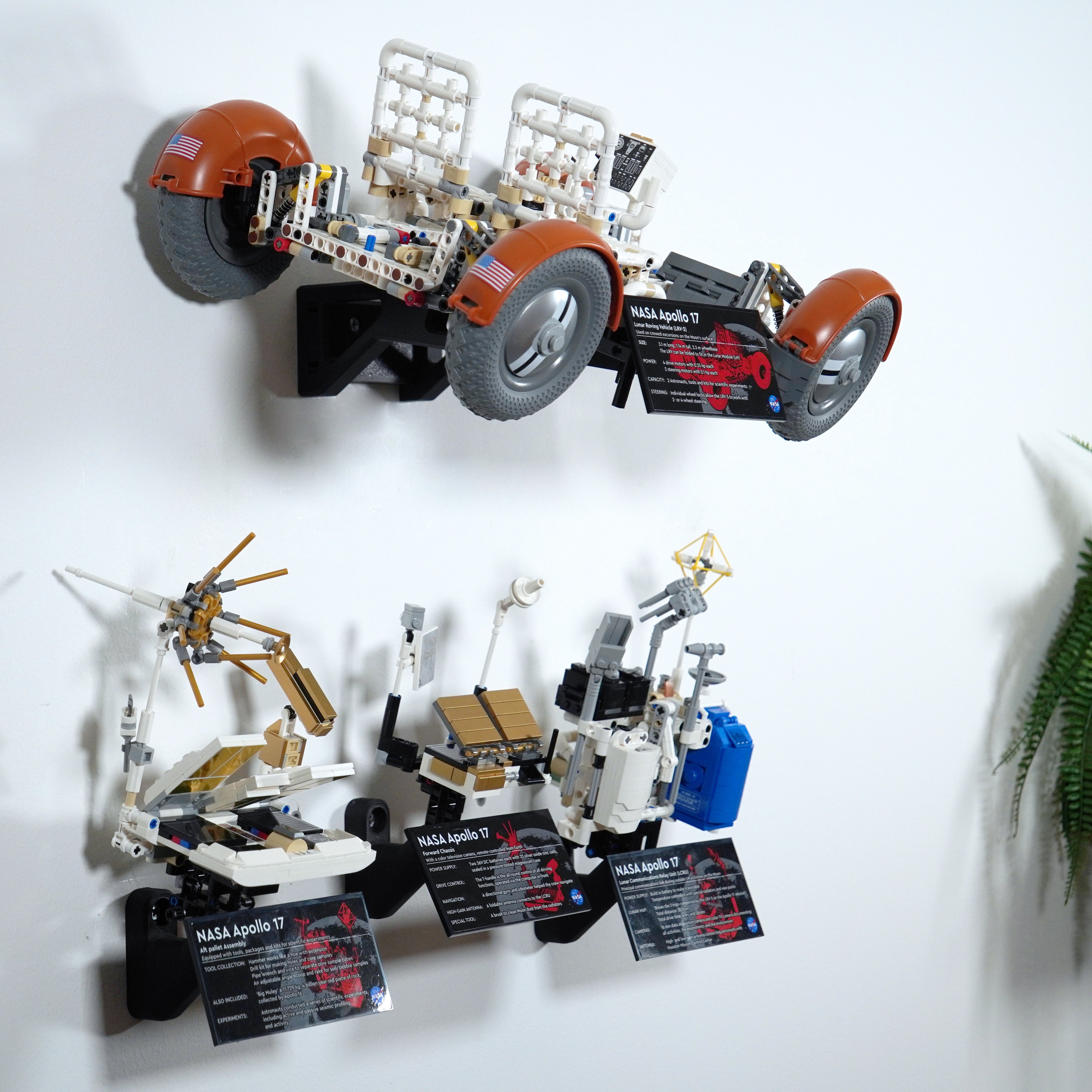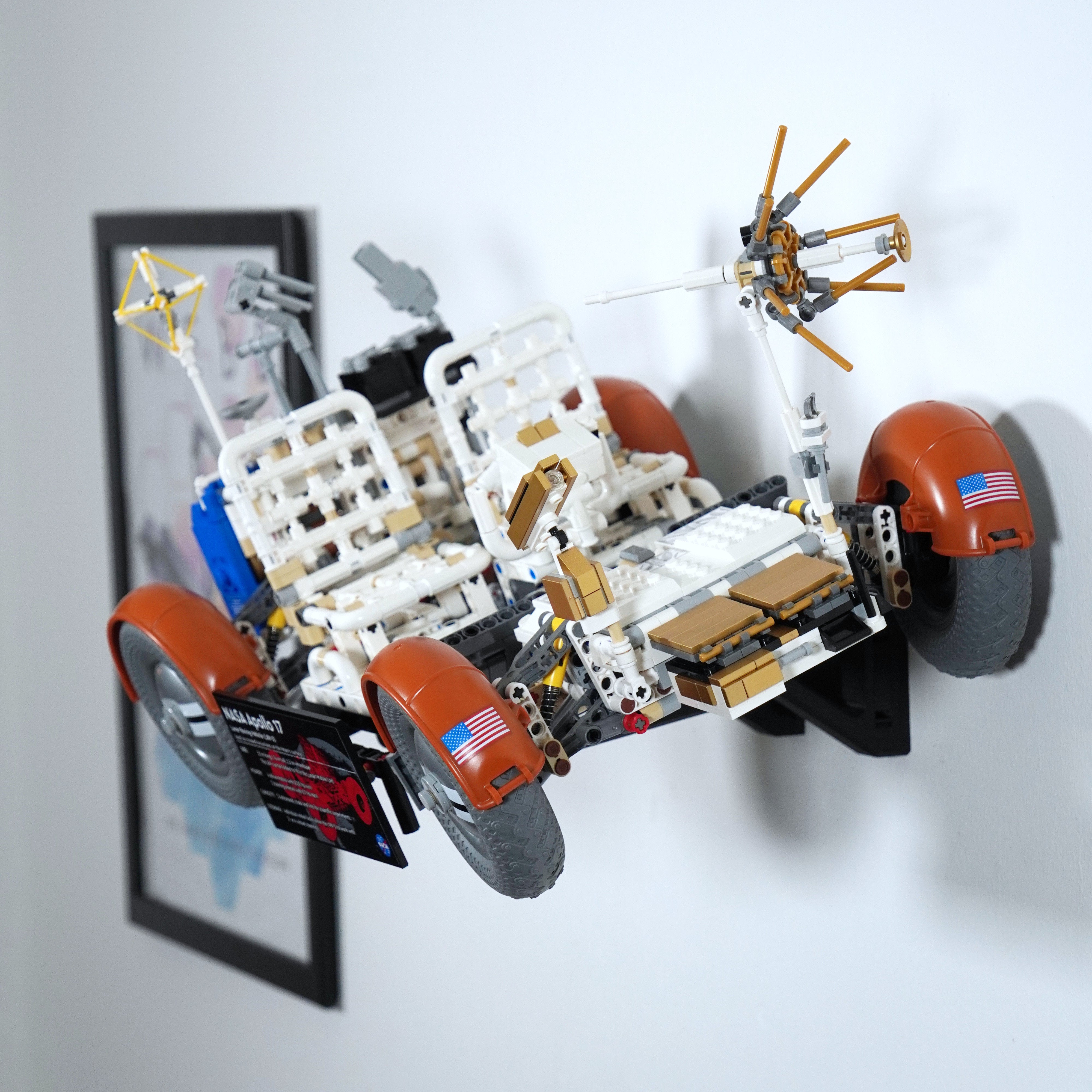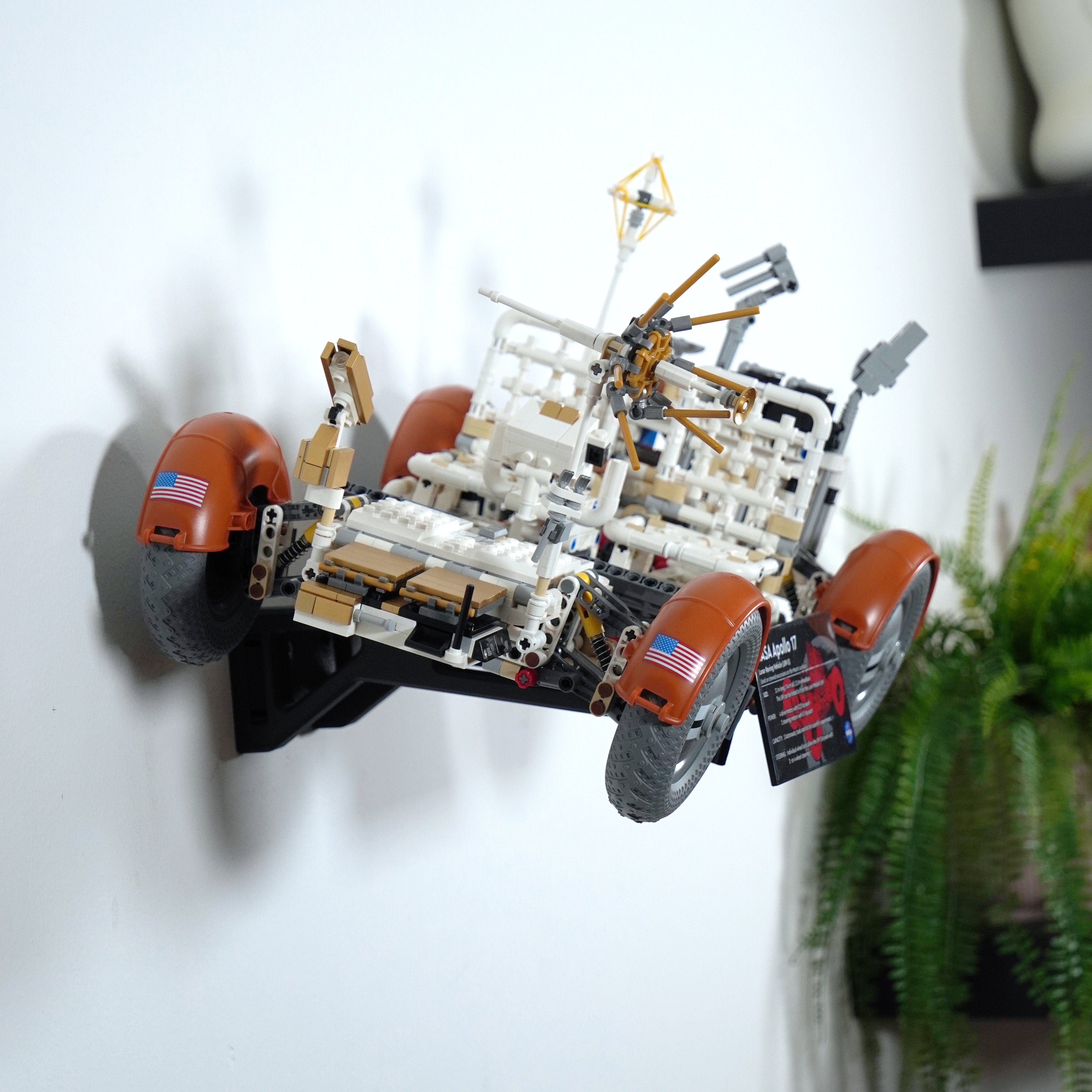 Mostra con eleganza il tuo Lunar Roving Vehicle della NASA Apollo con questo supporto da parete. Permette un posizionamento flessibile, sia ripiegato che dispiegato, e include staffe separate per i moduli e la targa informativa. Il design assicura una facile rimozione e una configurazione personalizzata sulla tua parete.