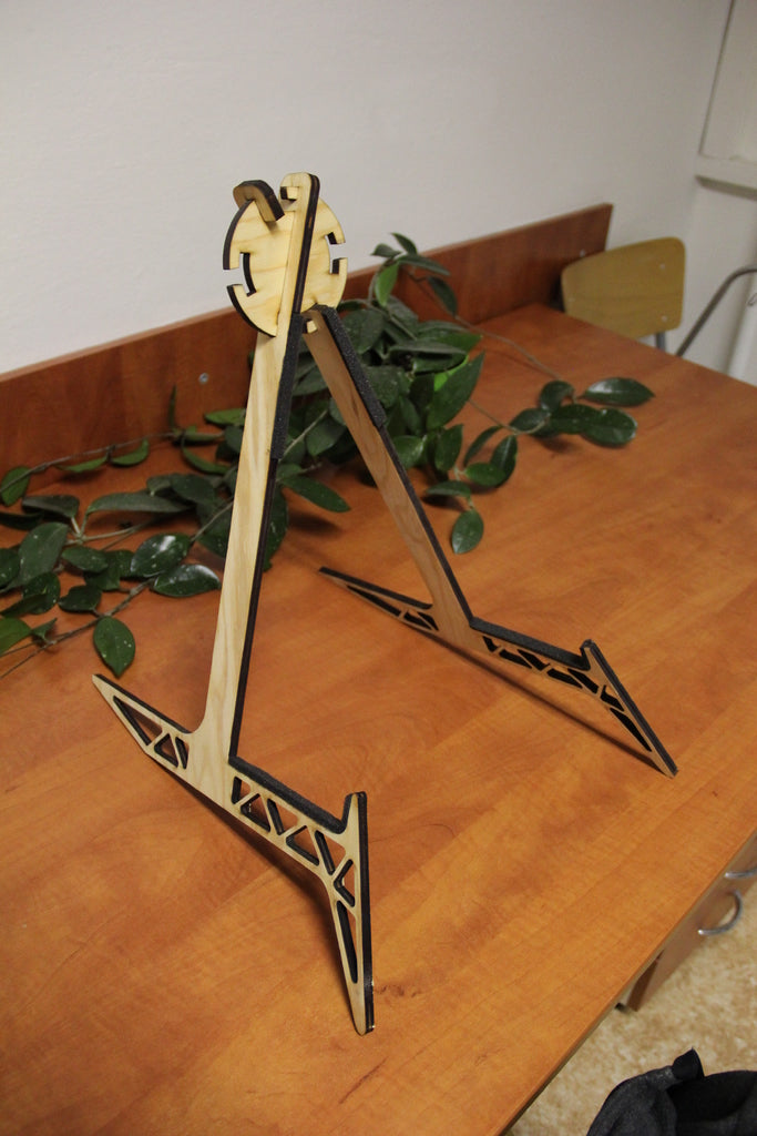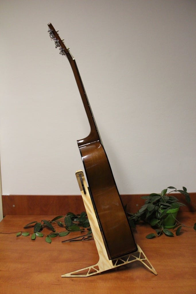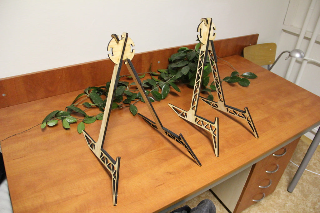 Questo supporto per chitarra tagliato al laser è progettato specificamente per contenere chitarre acustiche, garantendo un posizionamento stabile e sicuro del tuo strumento. Il supporto è costruito per chitarre con un corpo che rientra nelle dimensioni di 500 x 440 x 110 mm, con un baricentro di circa 400 mm di altezza. Il supporto rotondo centrale consente di regolare l'angolo delle gambe a 30 o 45 gradi, offrendo flessibilità nell'installazione. Per proteggere la tua chitarra dai graffi, si consiglia di rivestire i bordi con un materiale morbido, come la schiuma acustica. Realizzato in compensato di abete da 8 mm, questo supporto offre una soluzione robusta ed elegante per riporre la tua chitarra acustica.