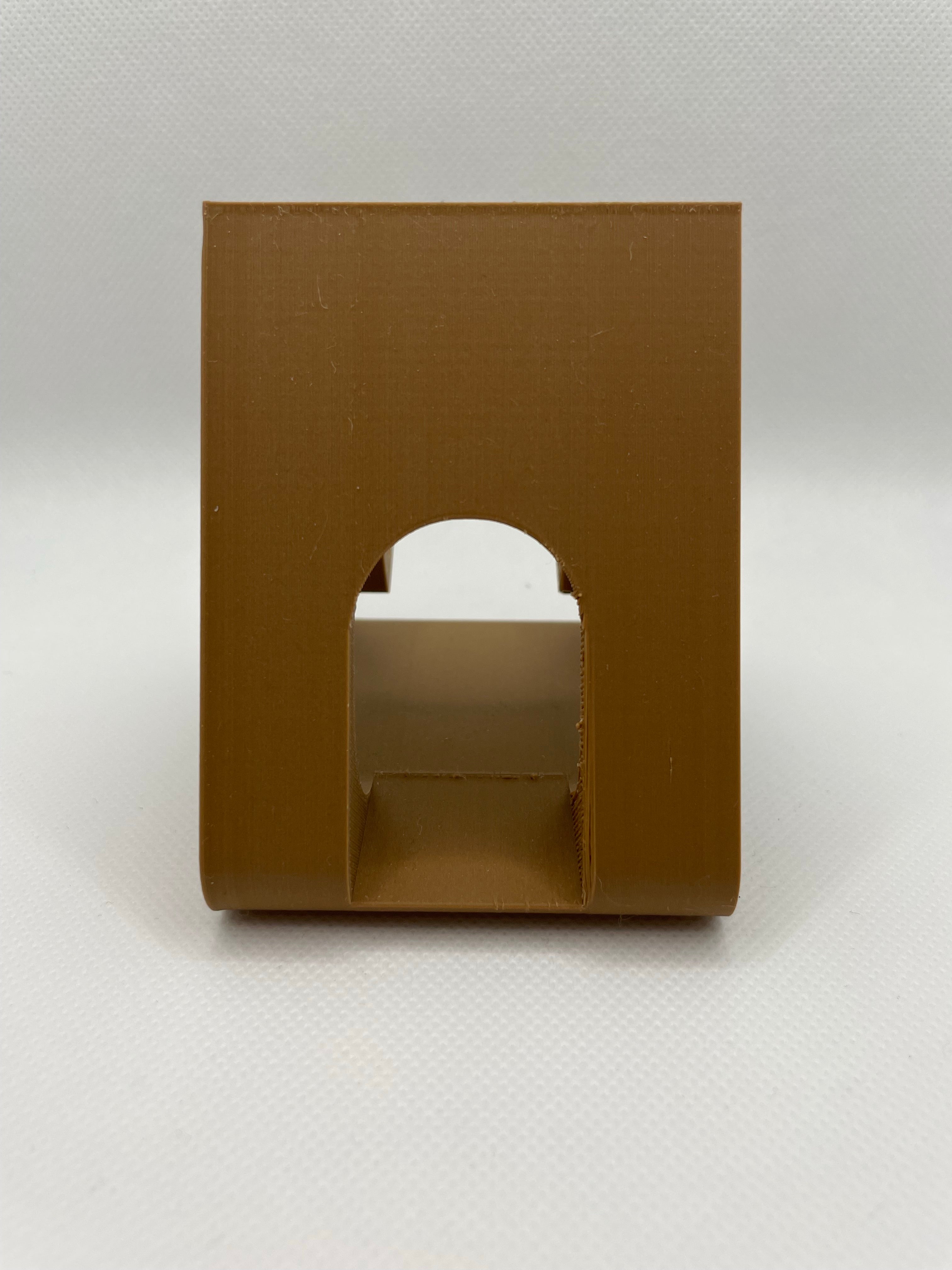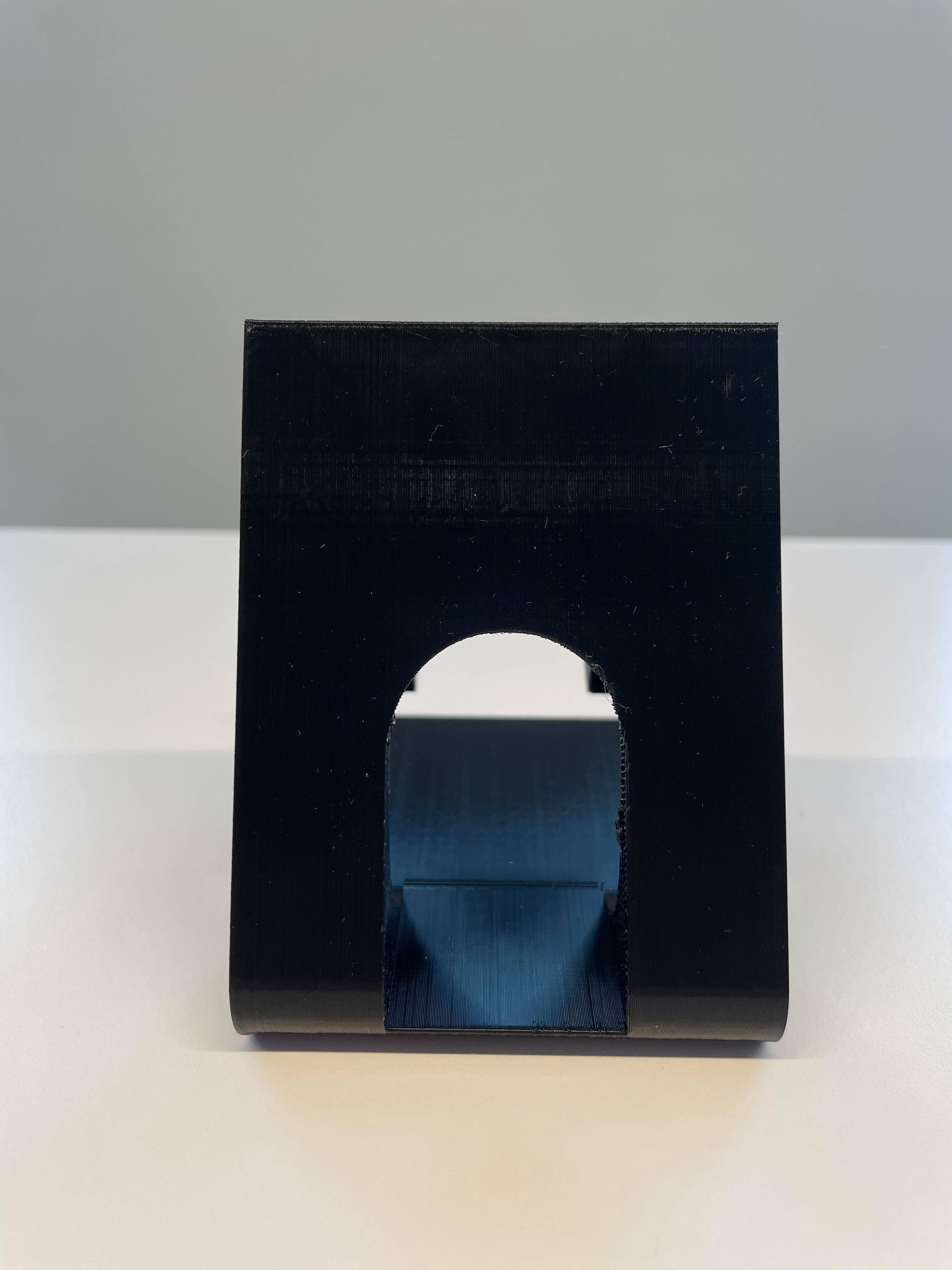 Supporto universale per telefono. Il cavo passa attraverso il foro e può quindi essere portato fino al telefono.