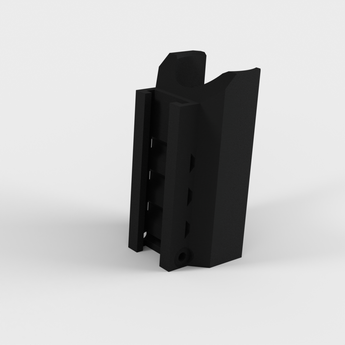 Questo è un supporto tattico per torcia per Nerf Elite Rails. Progettato per le torce LED zoomabili da 2000 lumen che puoi trovare su Amazon. Le parti necessarie sono: 2 o 3 fascette, una vite a bullone M3 lunga 25 mm, un dado M3, una torcia e una pistola Nerf. I fori prendono un bullone M3 attraverso di essi e sono progettati per sedersi negli incavi sulla guida Nerf. Questo impedisce la caduta dell'allegato. I 3 fori sul lato servono per le fascette per tenere la torcia in posizione. Questo è progettato per la stampa senza supporto in posizione verticale, il che consente anche la massima forza per tenere la torcia. Tieni presente che questo funziona solo con Elite Rails ed è stato testato solo su una Stryfe.