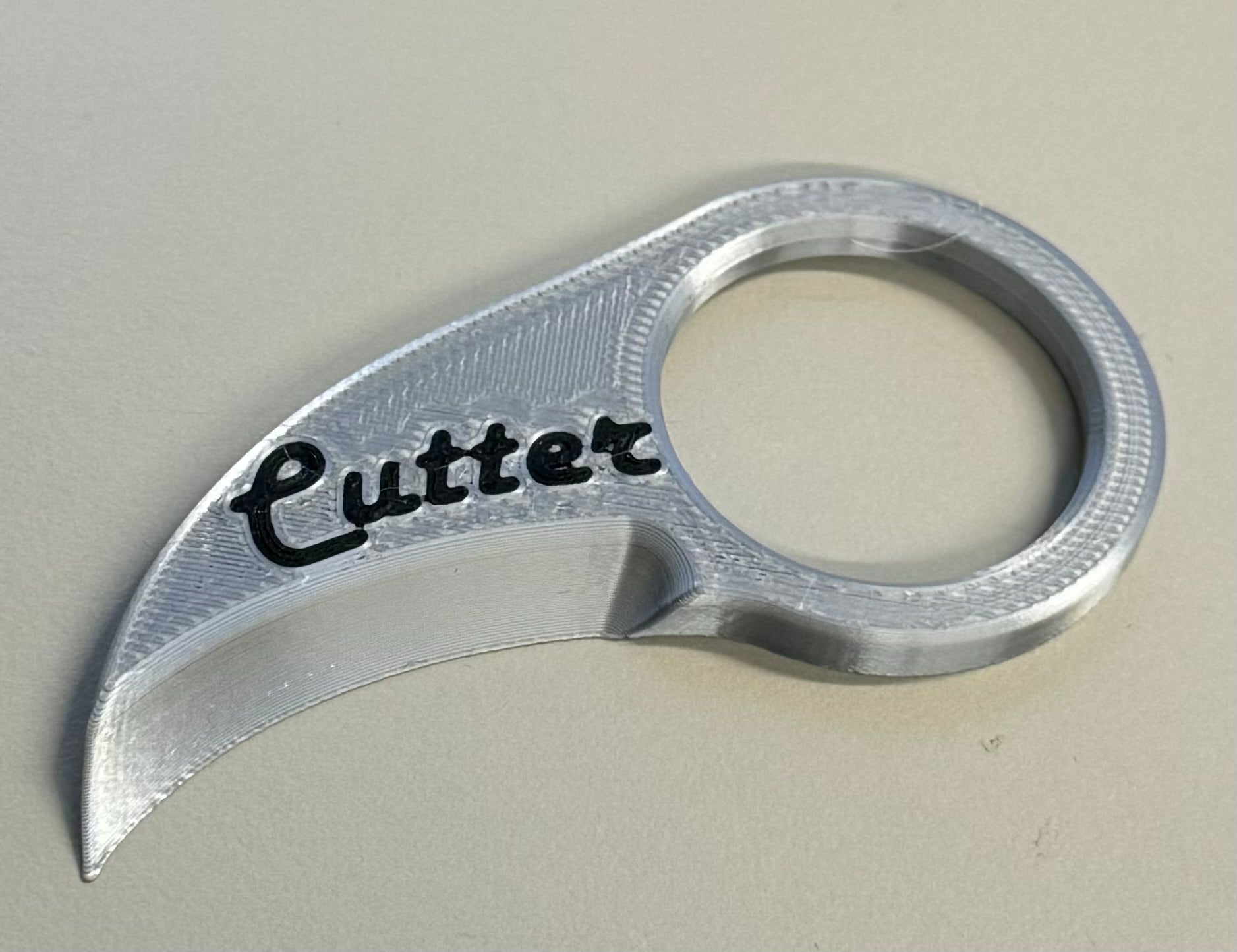 Box Cutter/Knife 3000 è uno strumento pratico e funzionale progettato per aprire facilmente scatole sigillate con nastro. La forma snella rende facile maneggiare questo cutter in vari compiti, dall'aprire pacchi al taglio generale. Il design minimalista del cutter, che include il testo 'cutter' sulla parte superiore, consente sia personalizzazioni monocolore che bicolore, rendendolo un'aggiunta personale e stilosa al tuo toolkit.