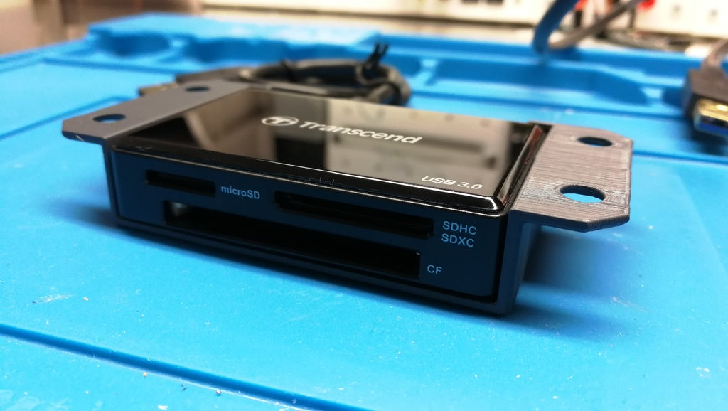 Il supporto è realizzato per adattarsi a modelli con dimensioni esterne simili al Transcend TS-RDF8K e si prevede che anche la maggior parte delle versioni più recenti di lettori di schede simili si adattino senza problemi. Questo design assicura che il tuo lettore di schede SD sia fissato saldamente e sempre a portata di mano quando ne hai bisogno, senza occupare spazio inutilmente sulla scrivania.