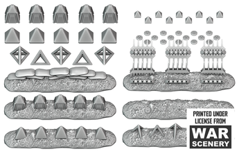 Questo set di fortificazioni improvvisate funge da terreno strategicamente sparso per wargame da tavolo. Gli elementi sono ideali per creare campi di battaglia suggestivi per Warhammer 40k. Usa queste fortificazioni per fornire copertura alle tue forze Imperiali, del Caos o Xenos.