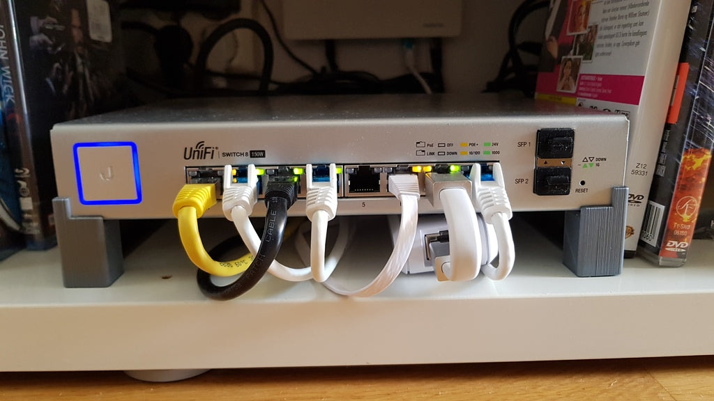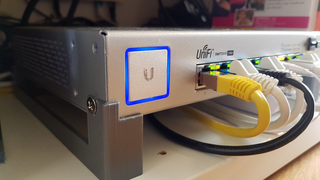 Supporto per Ubiquiti UniFi Switch 8 150w. Questo è montato sullo switch utilizzando una delle viti fornite con lo switch. C'è spazio sotto per posizionare la UniFi Cloud Key.