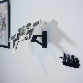 Fremvis dine Star Wars-modeller med disse justerbare vægbeslag, der er designet til Tie Interceptor og Fang Fighter. Sættet gør det muligt at udstille rumskibene i forskellige vinkler via de medfølgende adaptere. Der medfølger desuden et separat beslag til minifigurer, og installationen kræver blot en enkelt skrue per beslag.