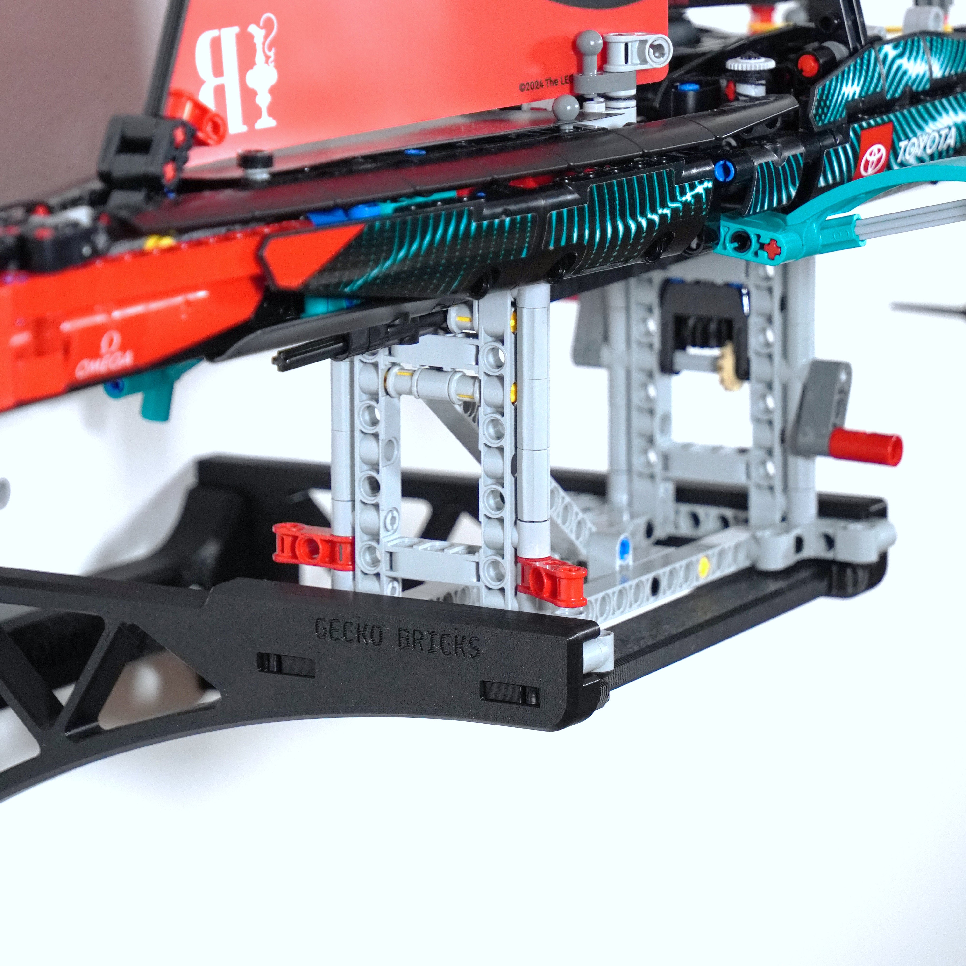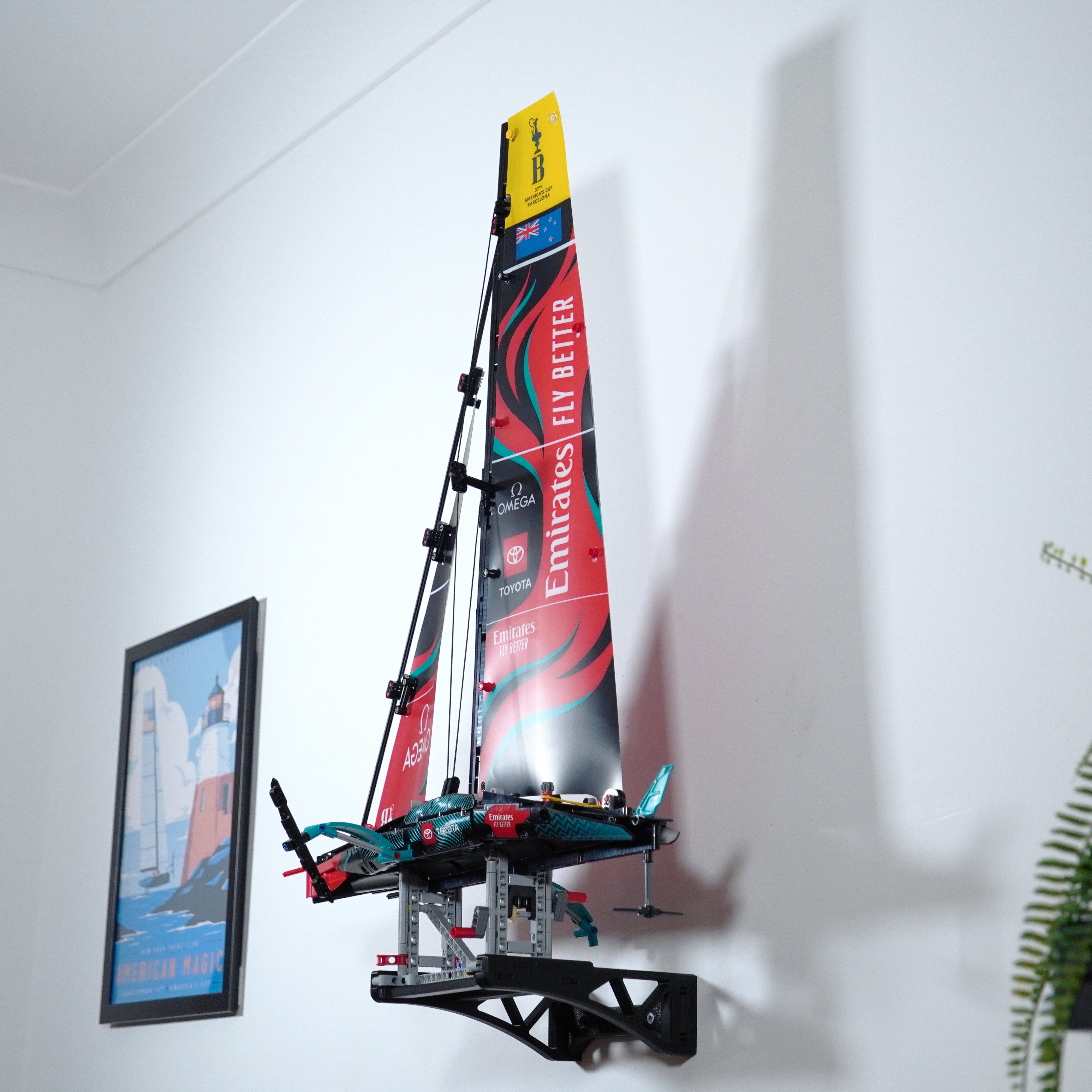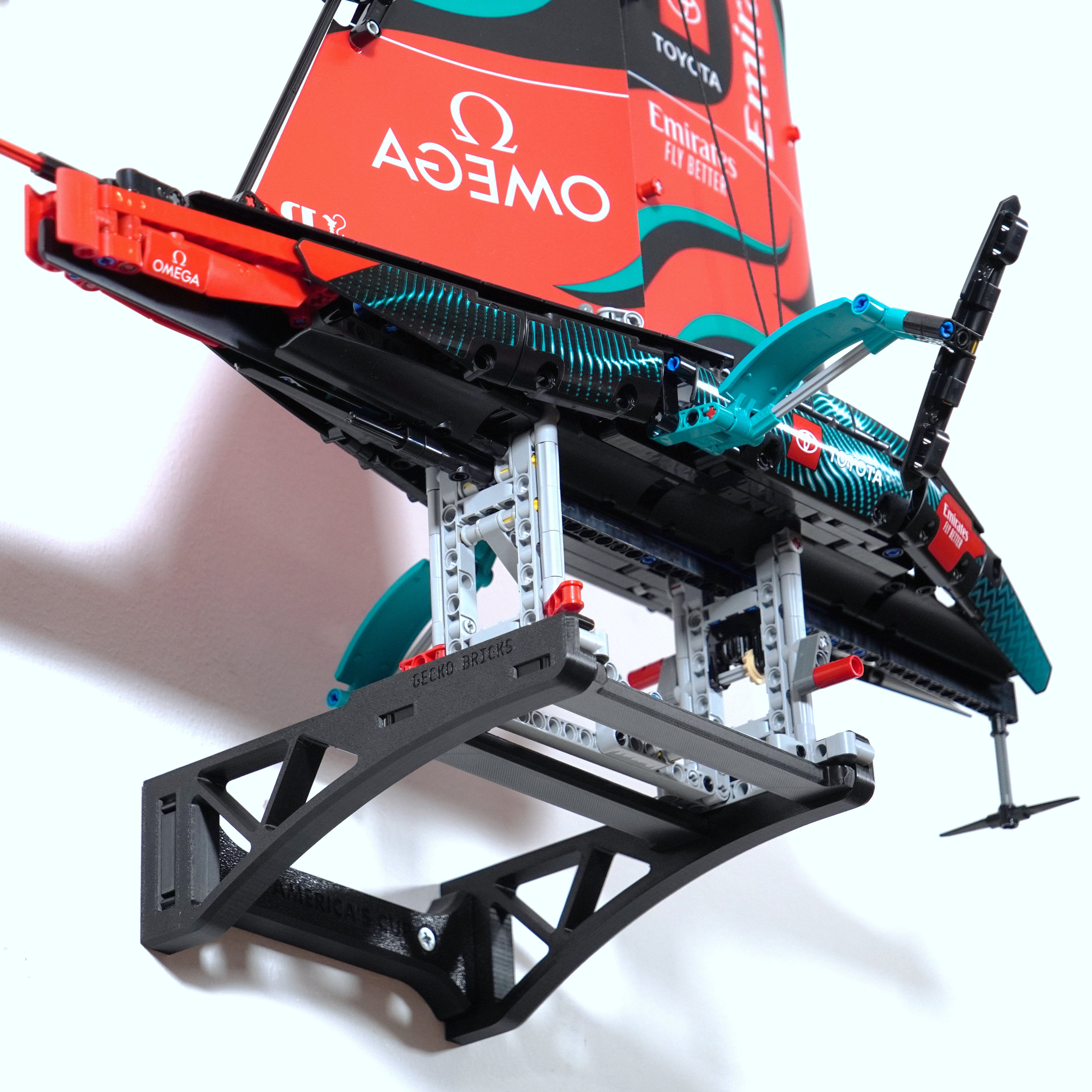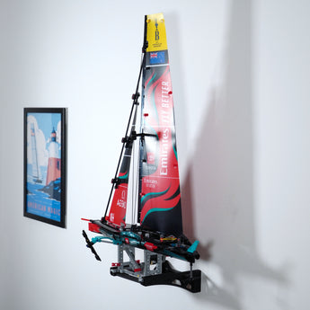 Dette vægophæng sikrer en stabil udstilling af din Technic Emirates New Zealand AC75 Yacht på væggen. Modellen kan monteres vendt mod enten højre eller venstre, og designet giver mulighed for at betjene de pneumatiske foil-arme. Den aftagelige del kan praktisk opbevares direkte i selve beslaget.