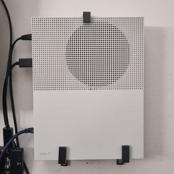Questo sistema di montaggio a parete consente di fissare saldamente la console Xbox One S alla parete. La soluzione contribuisce a liberare spazio sul mobile o sullo scaffale del televisore e a creare un ambiente di gioco più organizzato. Con un design che supporta una buona circolazione dell'aria, il supporto aiuta a garantire una temperatura di esercizio stabile per la console. È un modo funzionale per riporre la tua Xbox One S, che contribuisce a un'espressione ordinata e snella nella stanza.