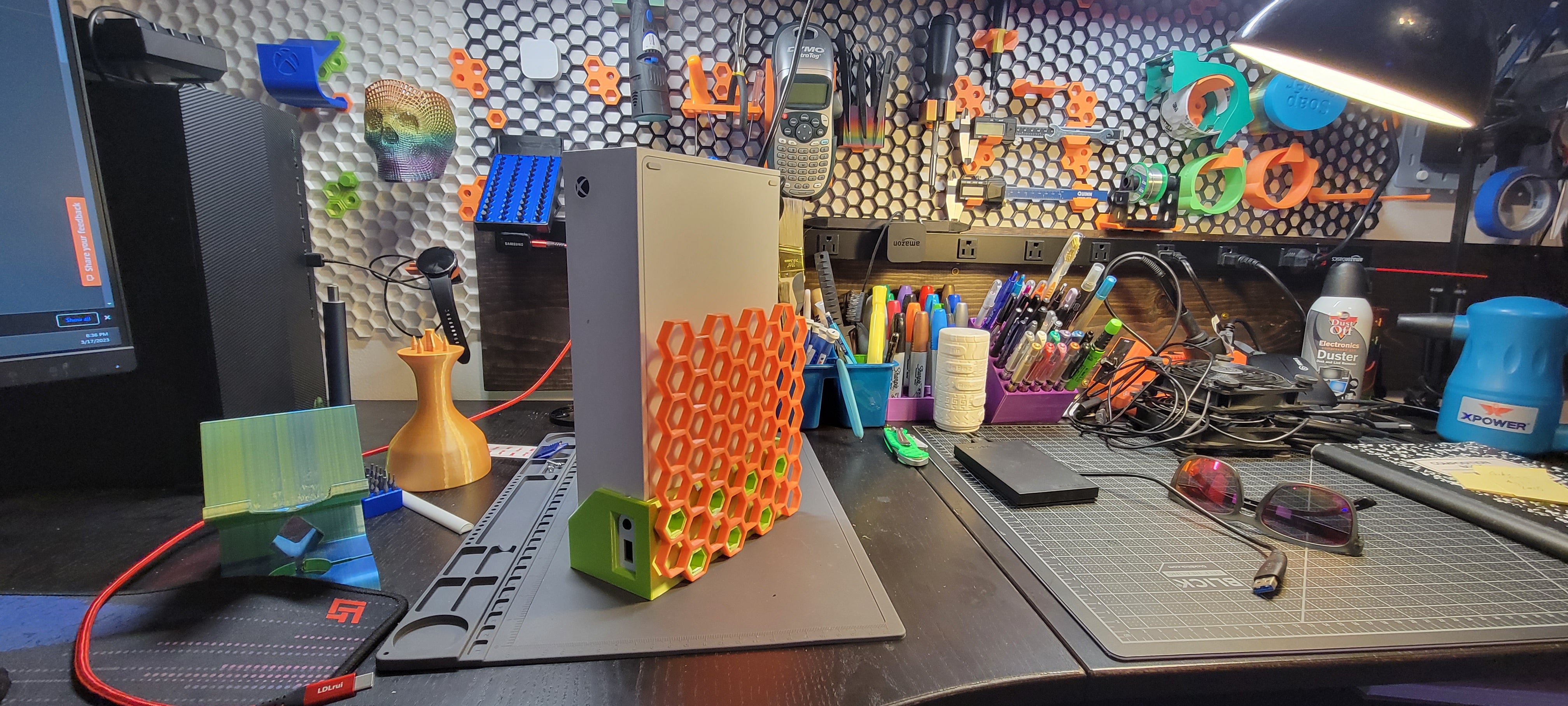 - Libera spazio prezioso sulla scrivania o sulla credenza per un'area di gioco più organizzata.